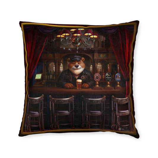 Square Pillow Bearman The Barman Cushion Reversible Bear Brewery Labels Home Bar Decor