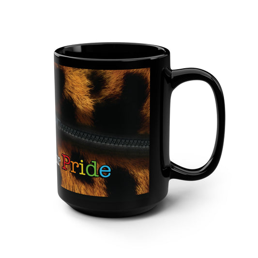 Black Mug, Pride Rainbow Leopard Print 15oz