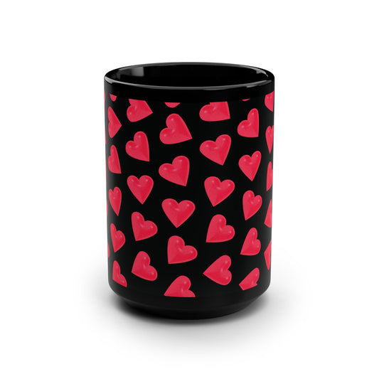 Cyber Heart Pattern – Futuristic Love Black Gloss 15oz Mug – Artwork by Andrew McCarter