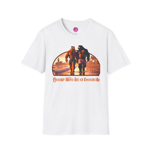 Bear Life is a Beach Unisex T-Shirt - Pride Bear Sunset Design