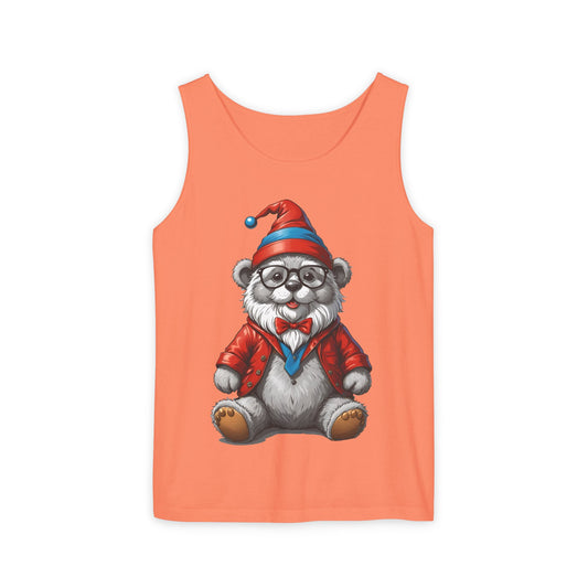 Swiss Gnome Bear Tank Top - Unisex Garment-Dyed Summer Sleeveless Shirt