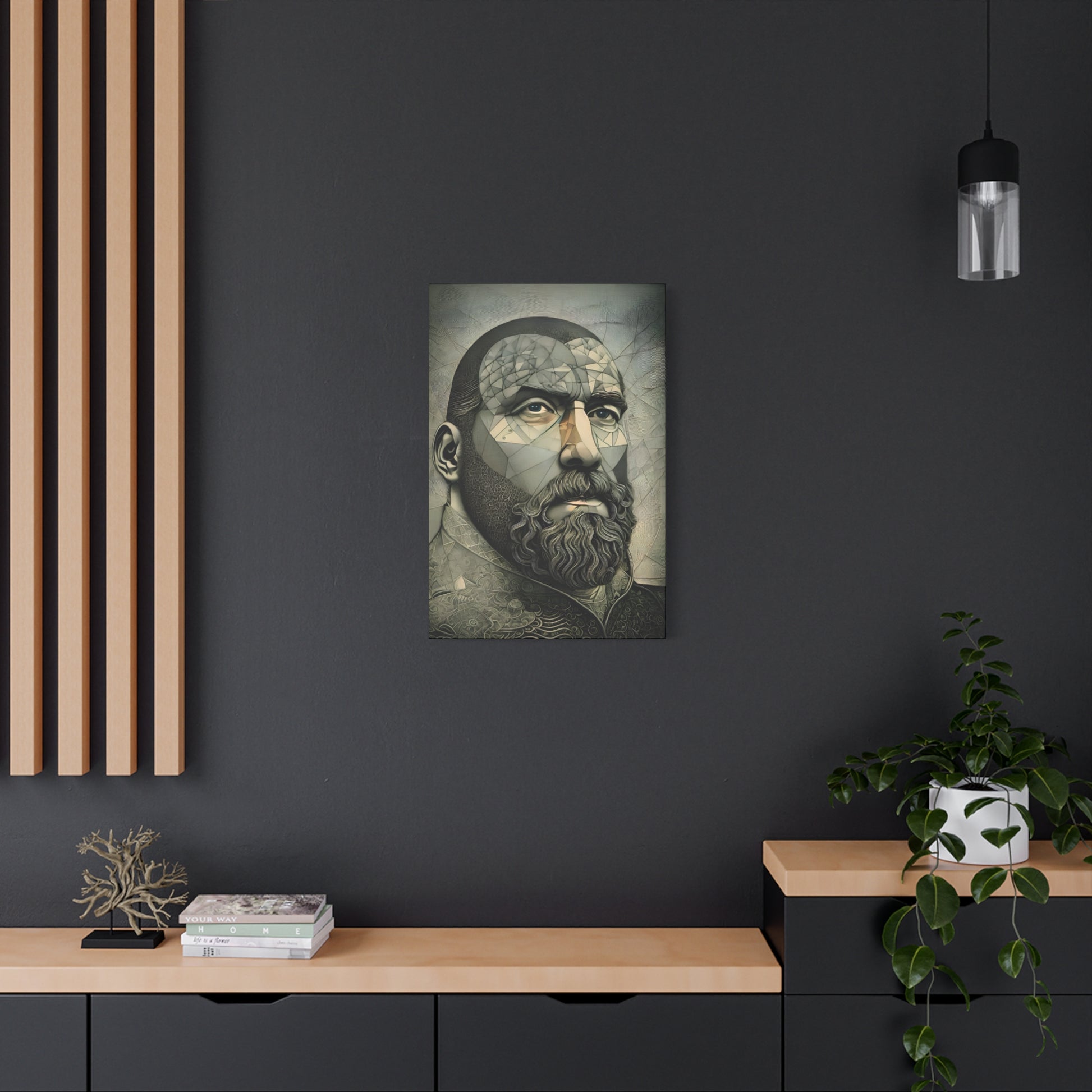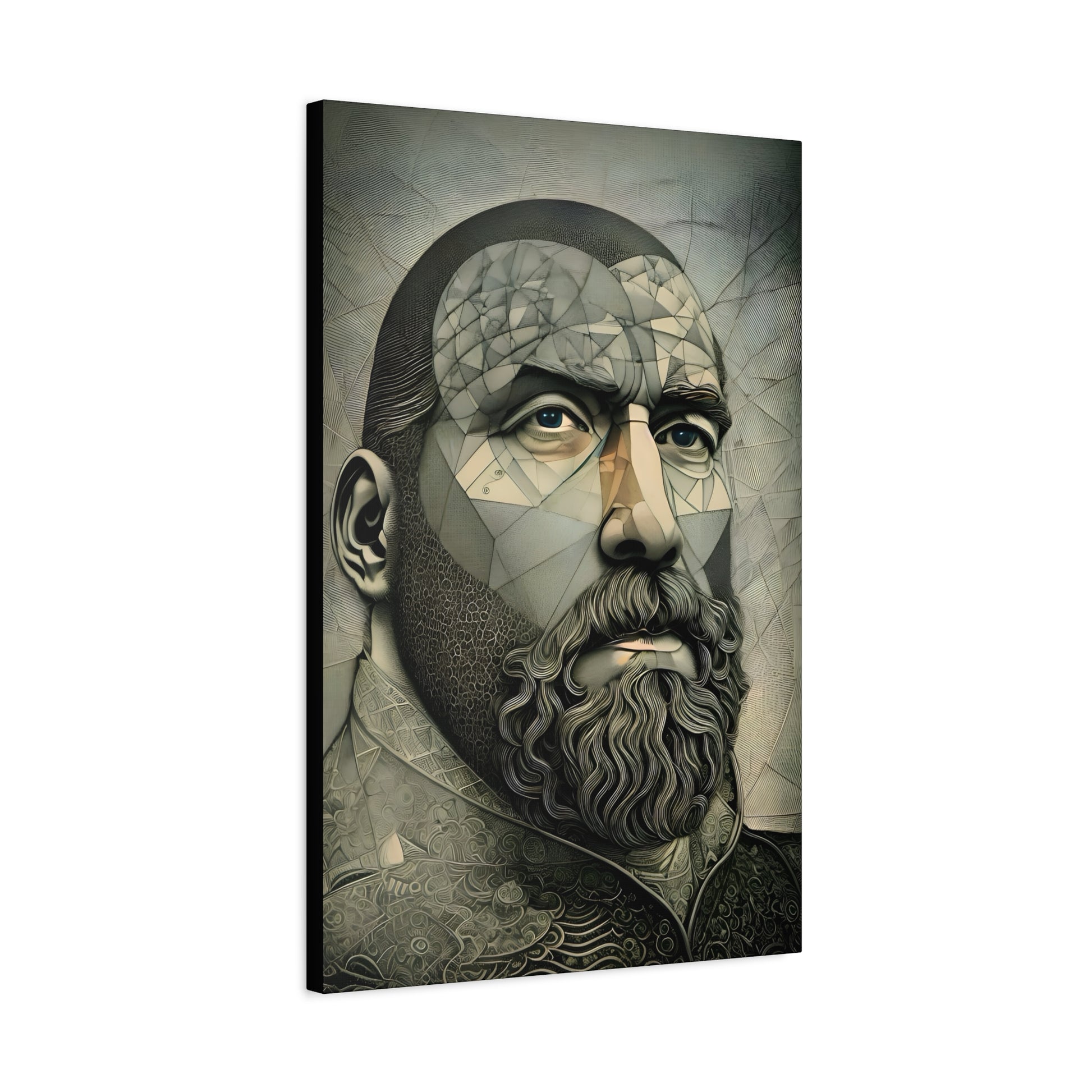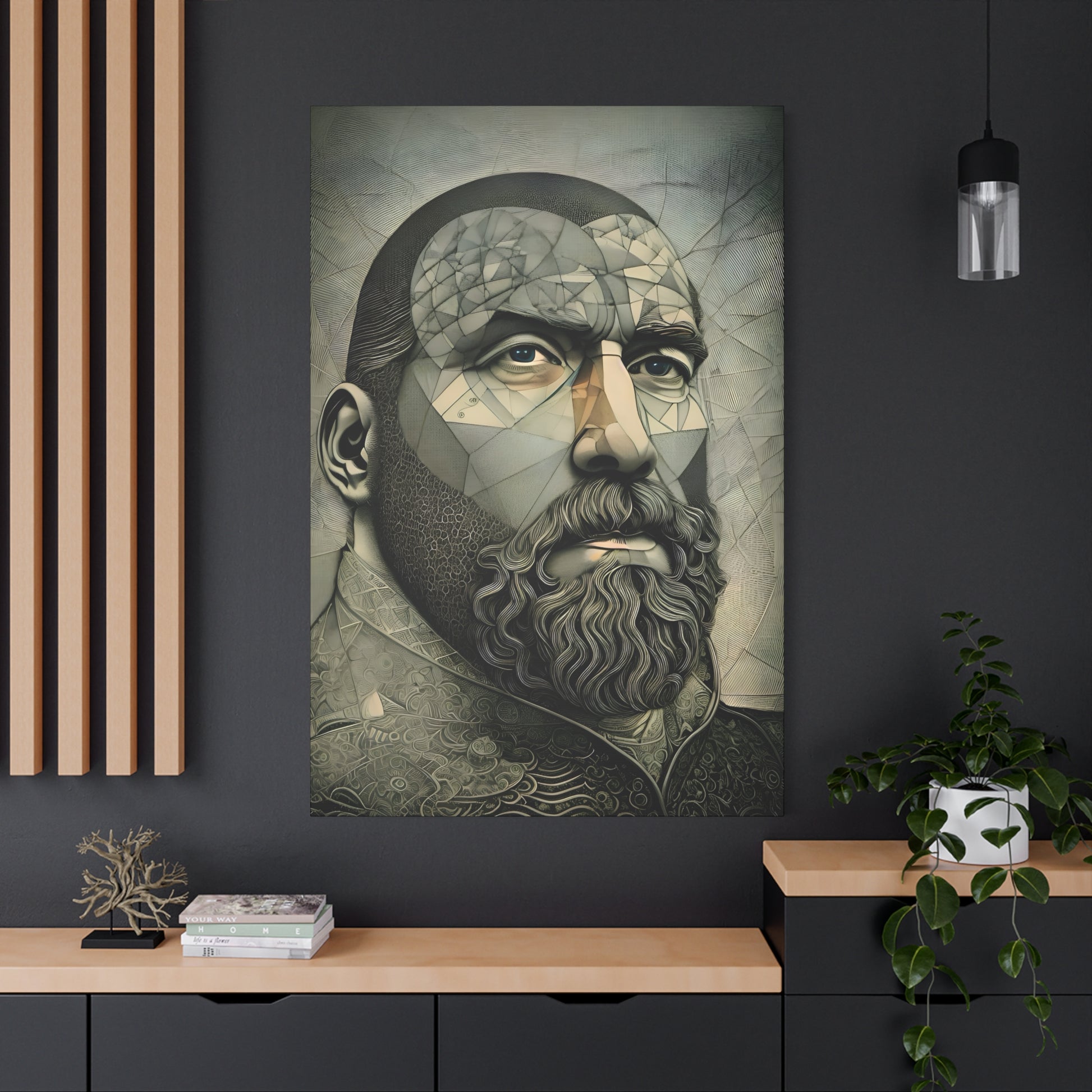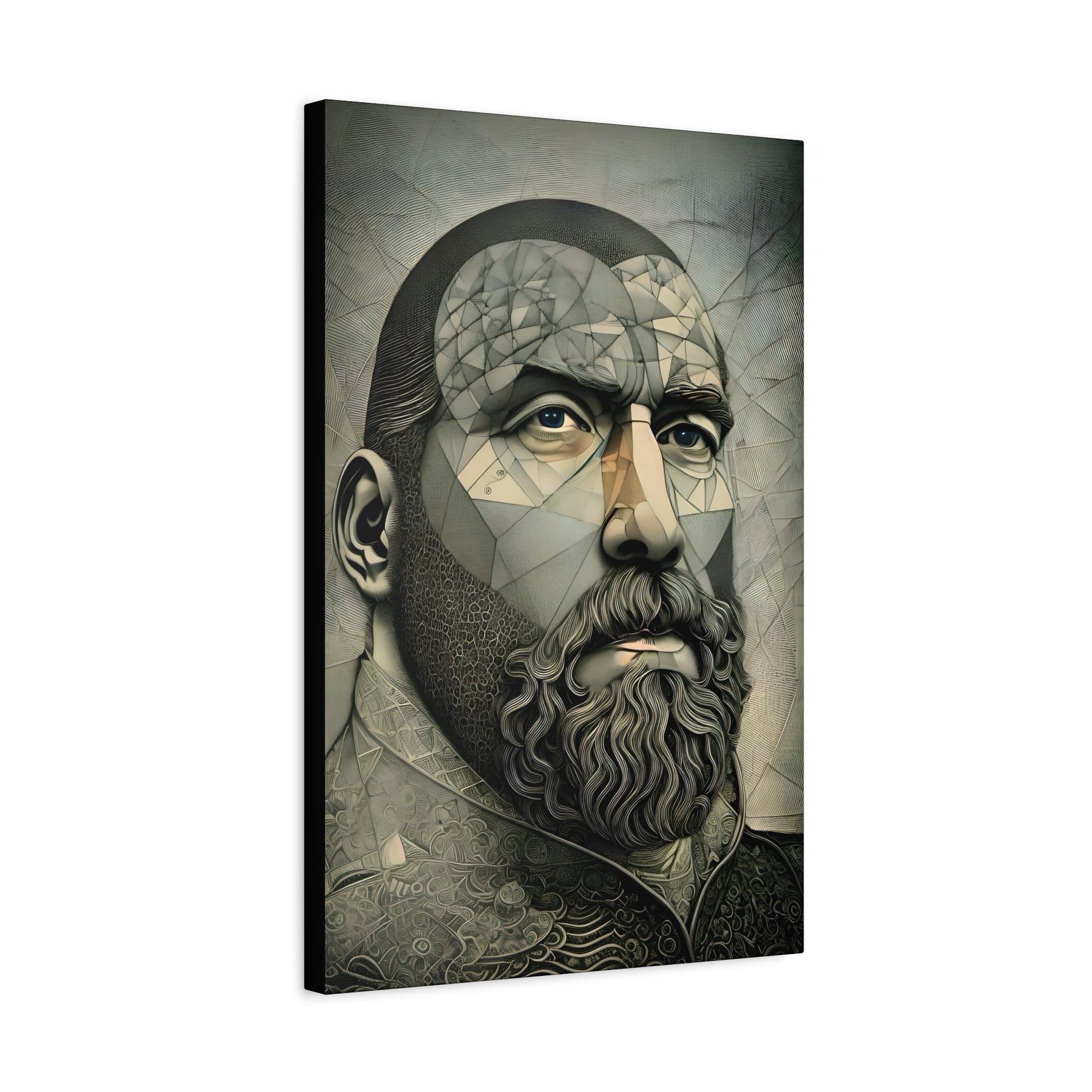 A striking meditation on strength, identity, and imperfection, “Fractured Peace” is a captivating artwork that blends geometric abstraction with classical portraiture. Ideal for those who appreciate thought-provoking, avant-garde art, this piece adds an air of mystery, sophistication, and quiet intensity to any contemporary space. Relevant for art enthusiasts, those seeking unique home decor, and individuals looking to add depth to their living environment. Perfect for occasions like housewarmings, birthdays, or anniversaries. From an original drawing by David Lake with artwork adapted by Andrew McCarter.