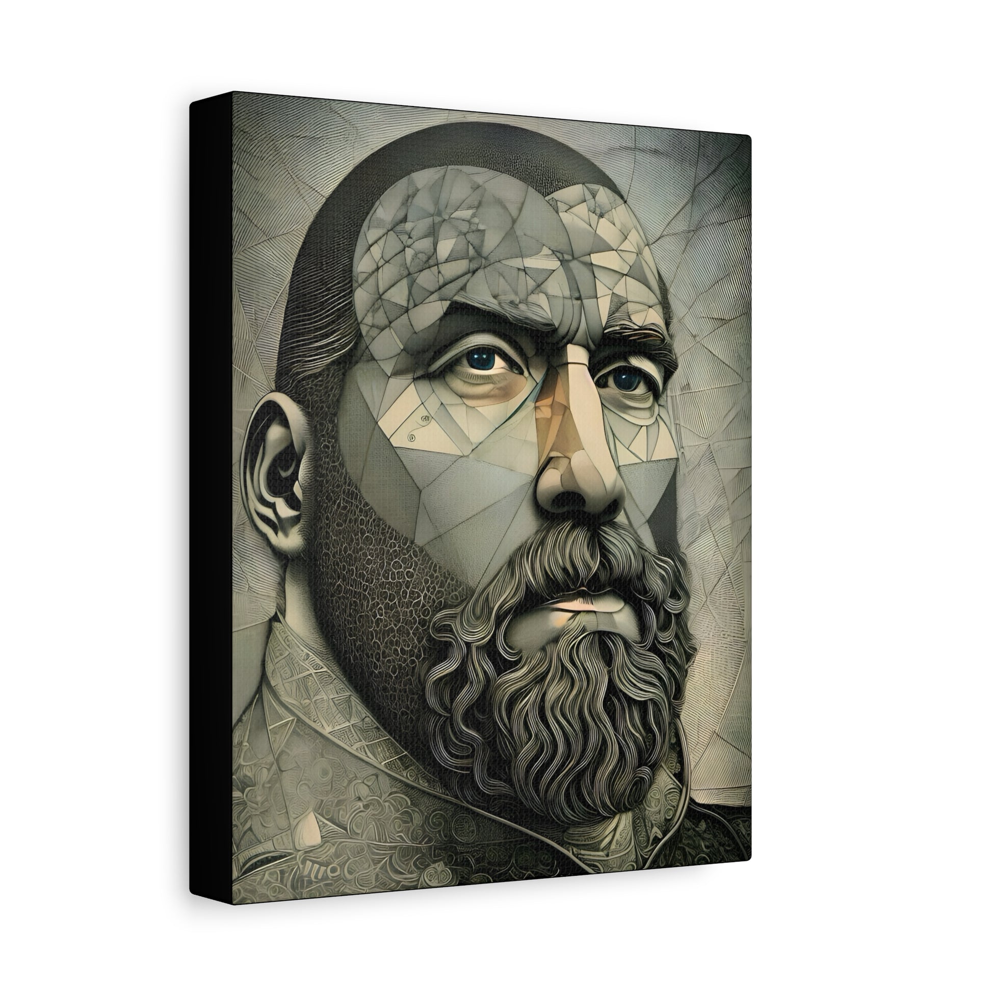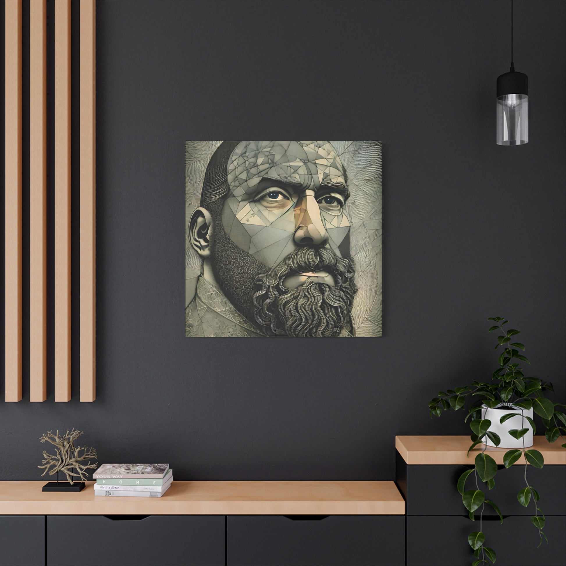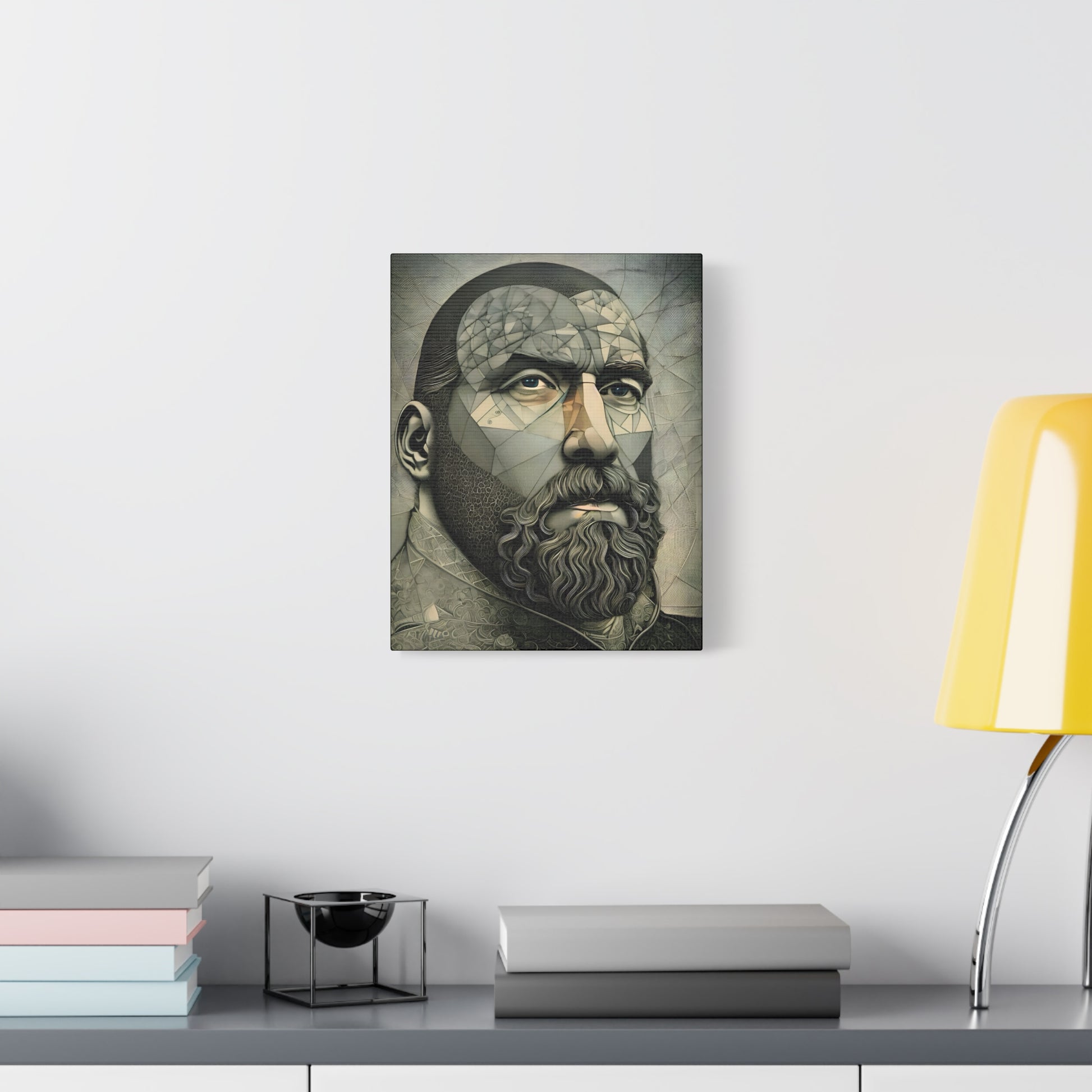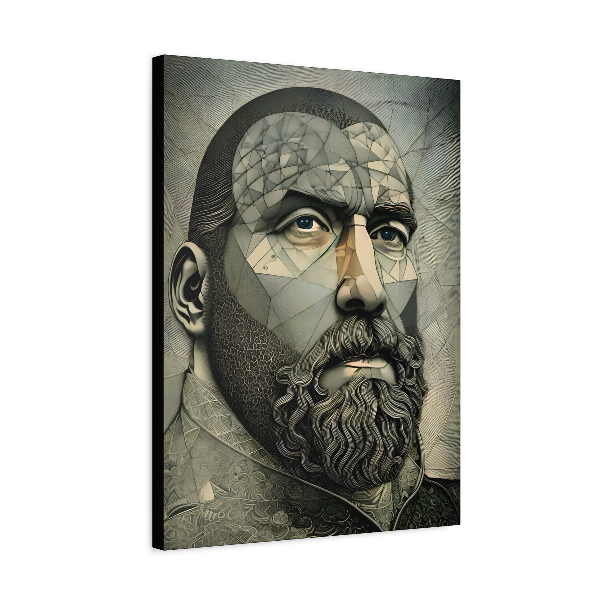 A striking meditation on strength, identity, and imperfection, “Fractured Peace” is a captivating artwork that blends geometric abstraction with classical portraiture. Ideal for those who appreciate thought-provoking, avant-garde art, this piece adds an air of mystery, sophistication, and quiet intensity to any contemporary space. Relevant for art enthusiasts, those seeking unique home decor, and individuals looking to add depth to their living environment. Perfect for occasions like housewarmings, birthdays, or anniversaries. From an original drawing by David Lake with artwork adapted by Andrew McCarter.