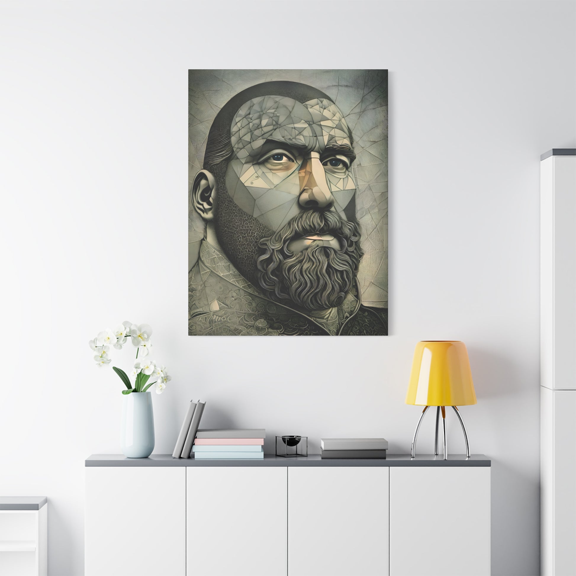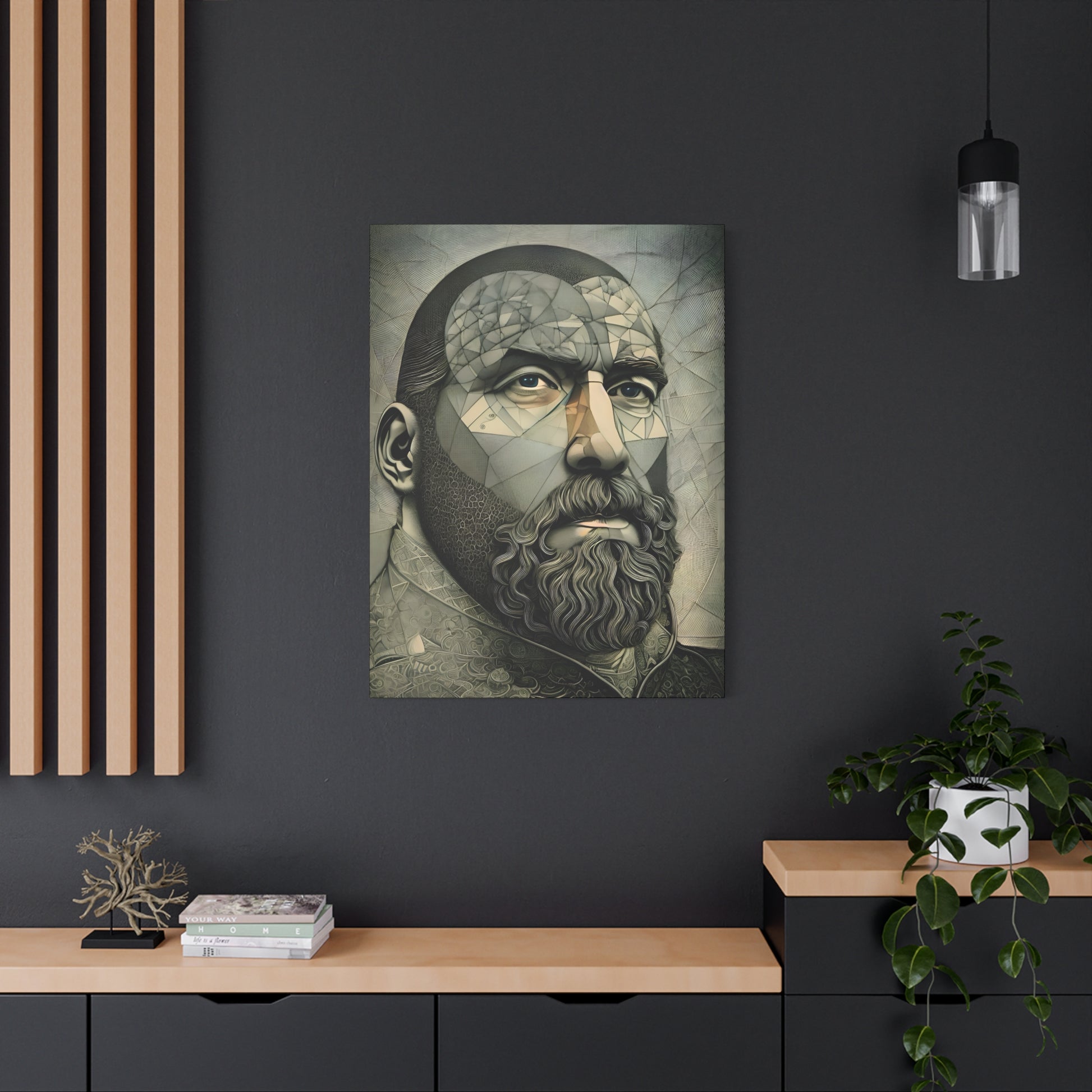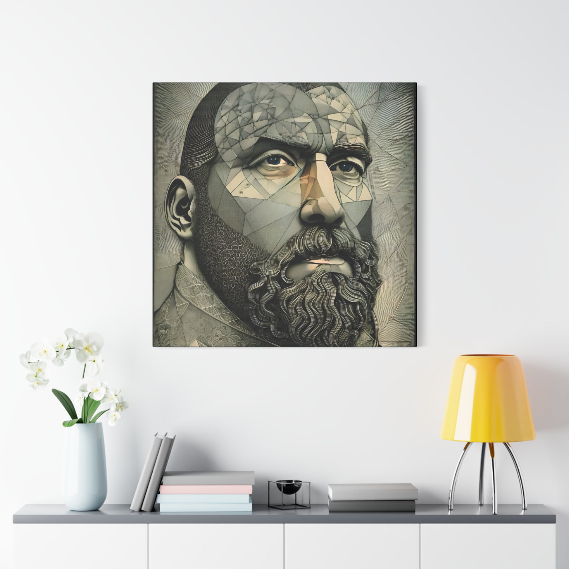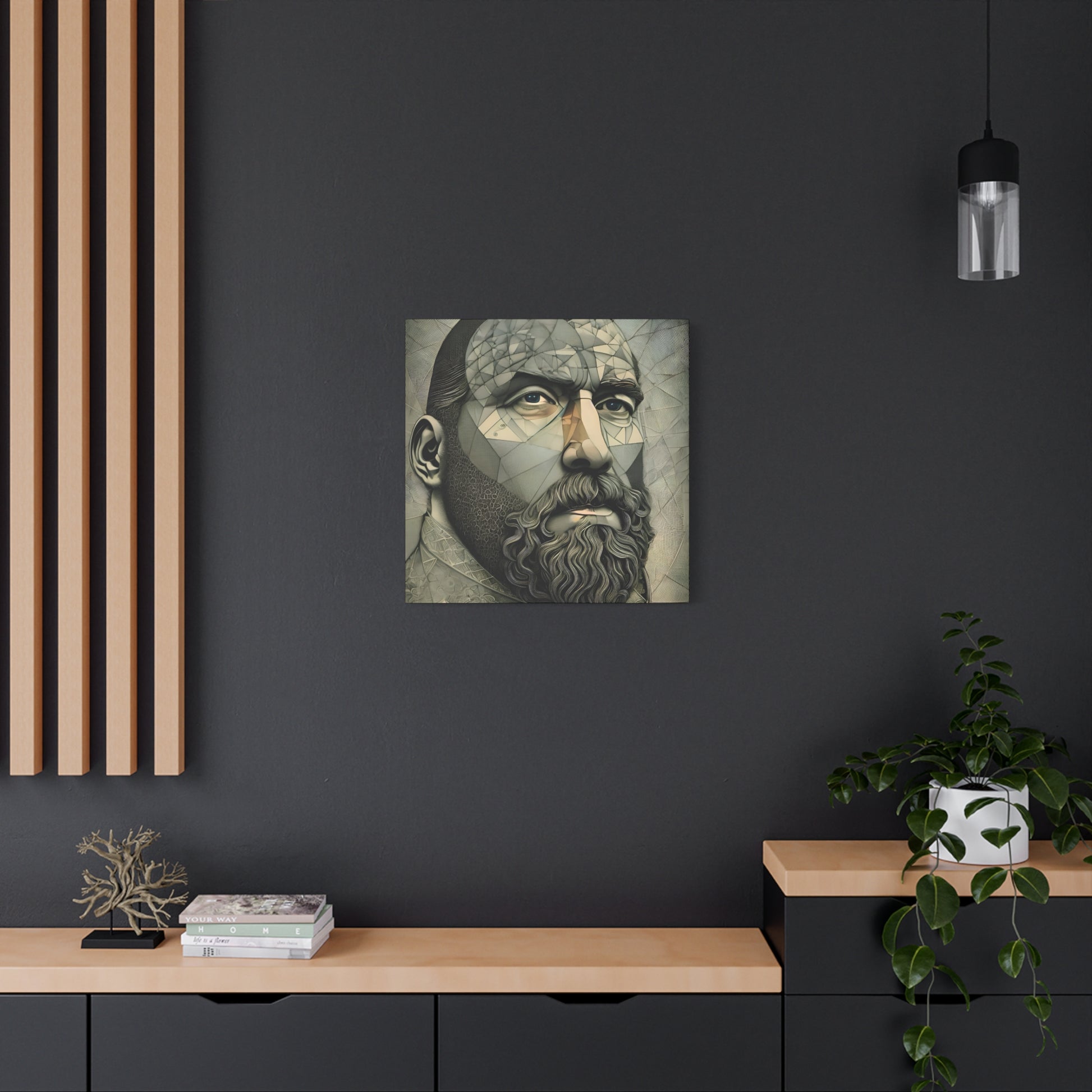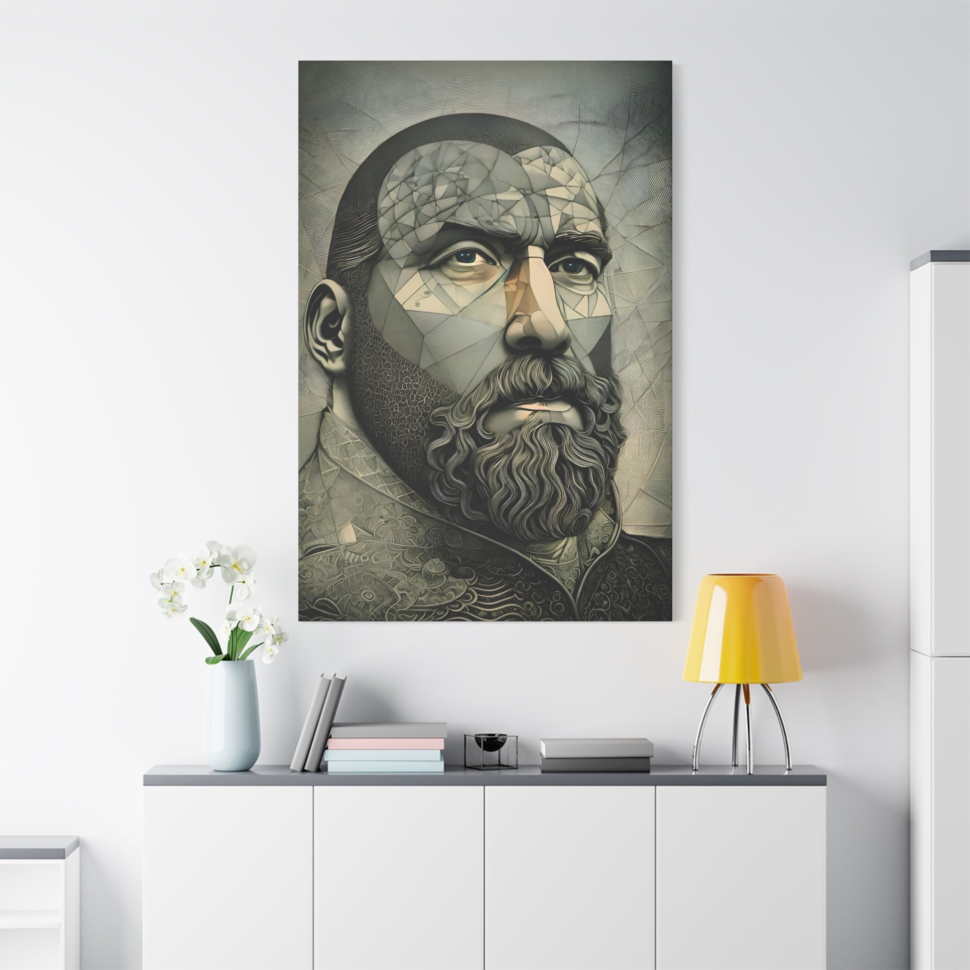A striking meditation on strength, identity, and imperfection, “Fractured Peace” is a captivating artwork that blends geometric abstraction with classical portraiture. Ideal for those who appreciate thought-provoking, avant-garde art, this piece adds an air of mystery, sophistication, and quiet intensity to any contemporary space. Relevant for art enthusiasts, those seeking unique home decor, and individuals looking to add depth to their living environment. Perfect for occasions like housewarmings, birthdays, or anniversaries. From an original drawing by David Lake with artwork adapted by Andrew McCarter.