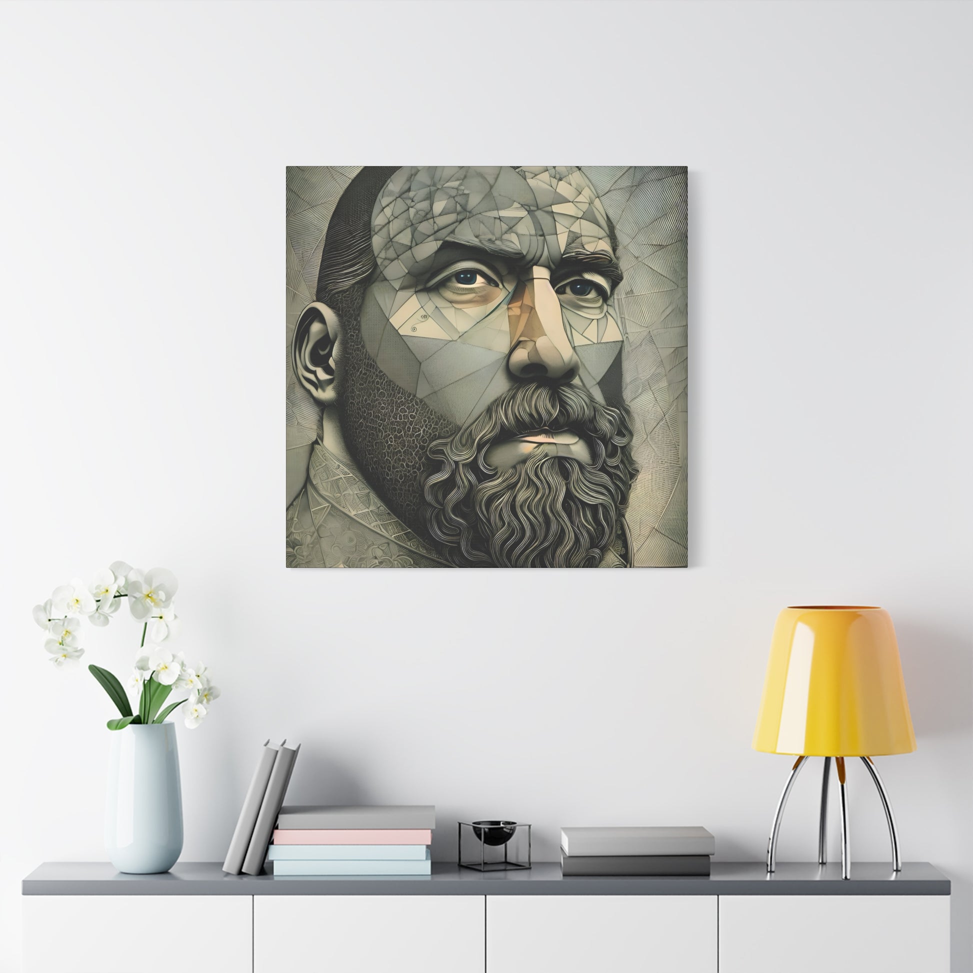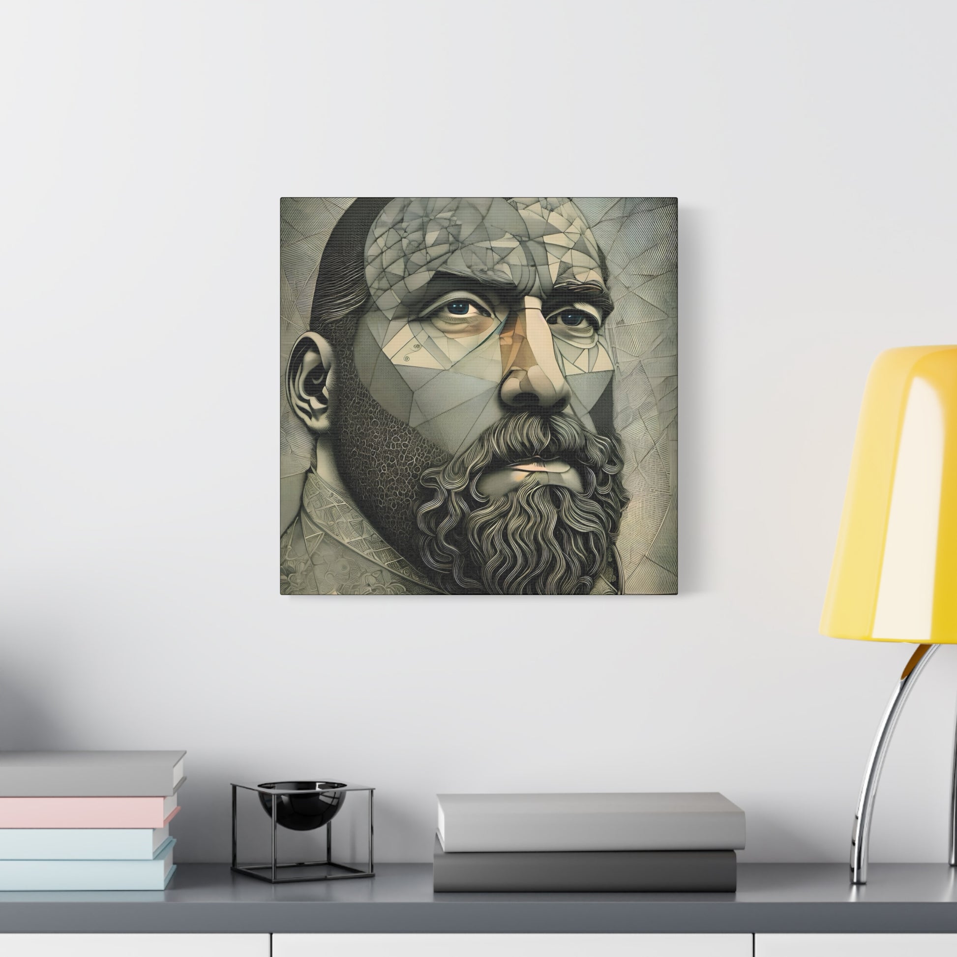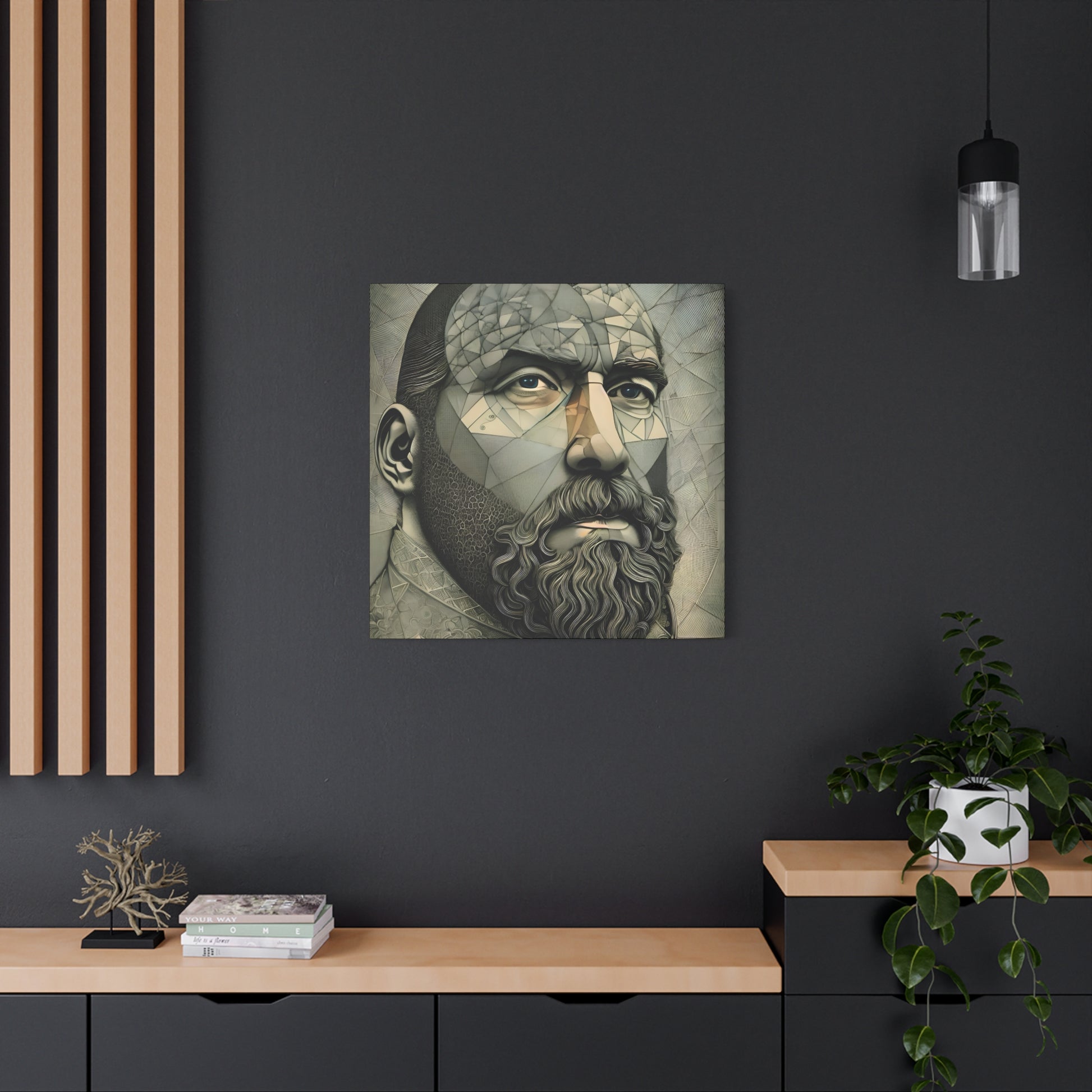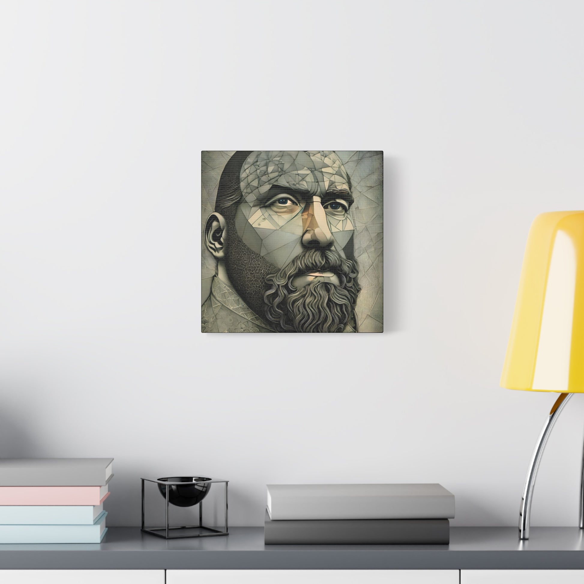 A striking meditation on strength, identity, and imperfection, “Fractured Peace” is a captivating artwork that blends geometric abstraction with classical portraiture. Ideal for those who appreciate thought-provoking, avant-garde art, this piece adds an air of mystery, sophistication, and quiet intensity to any contemporary space. Relevant for art enthusiasts, those seeking unique home decor, and individuals looking to add depth to their living environment. Perfect for occasions like housewarmings, birthdays, or anniversaries. From an original drawing by David Lake with artwork adapted by Andrew McCarter.