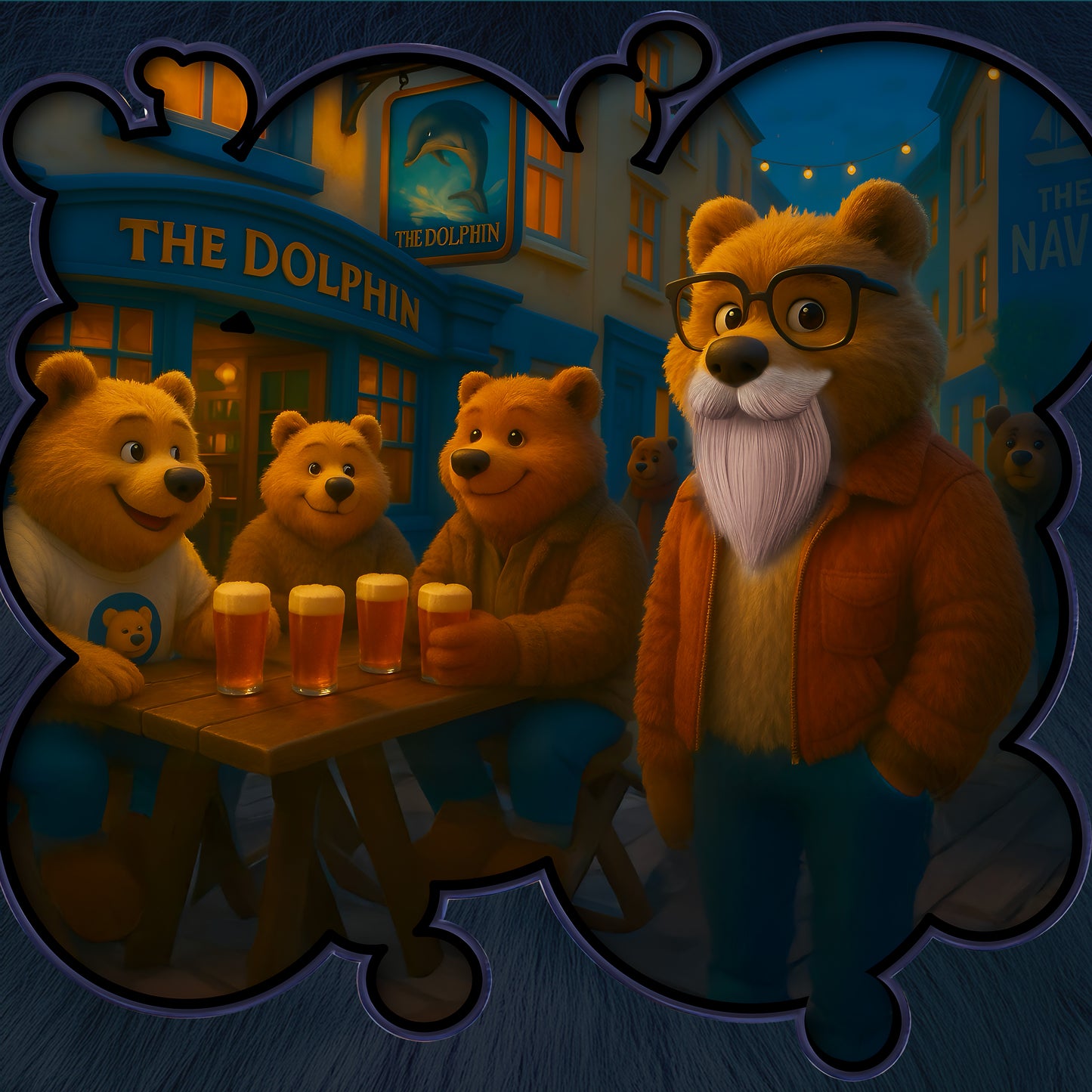 Embrace the cozy vibes of a classic pub night with 'Bears’ Night Out at The Dolphin Tee'. This PinkPond exclusive features a playful pub scene with loveable bear characters, perfect for proud bears, their admirers, and anyone who enjoys a night out with chosen family. Available in a variety of colors for worldwide shipping.