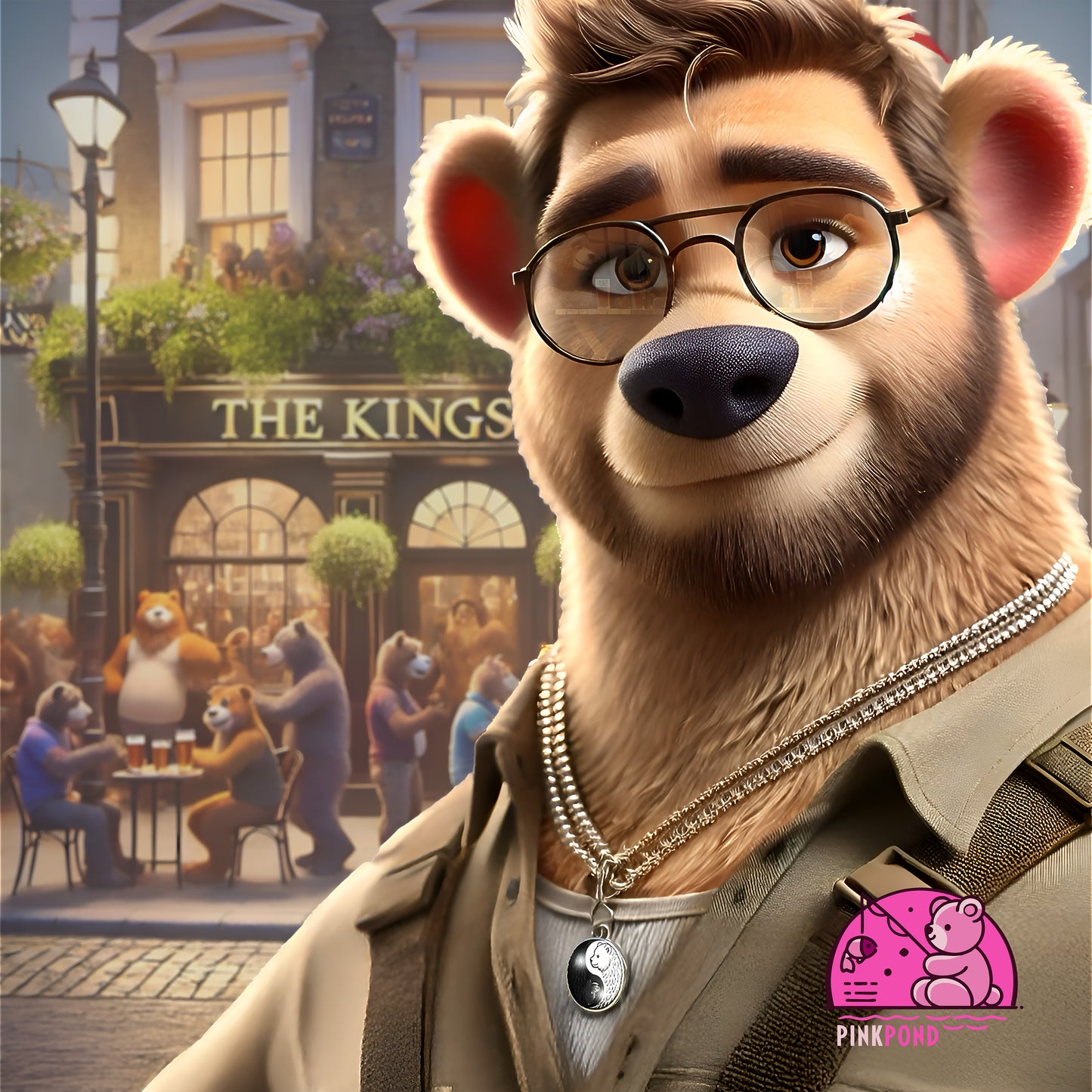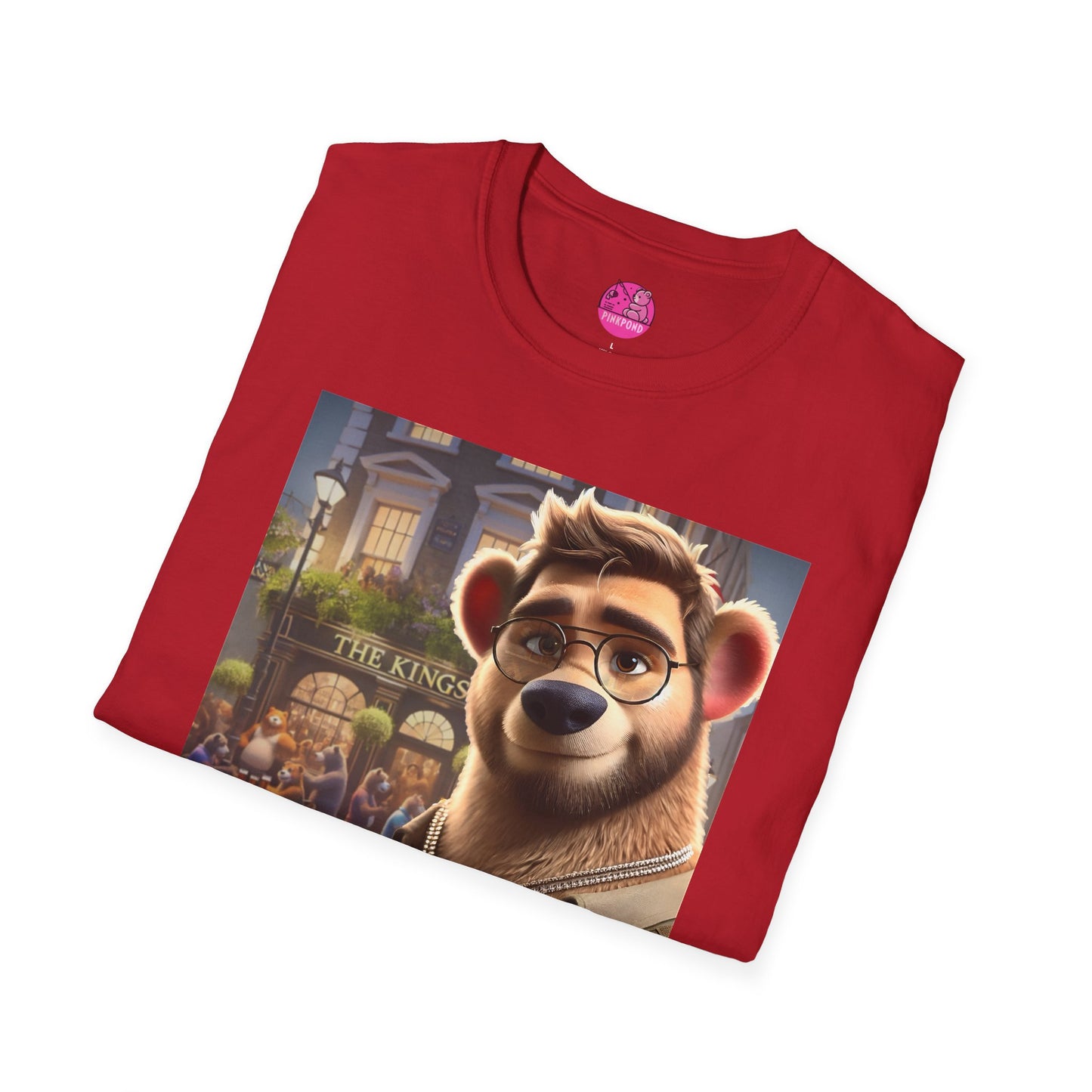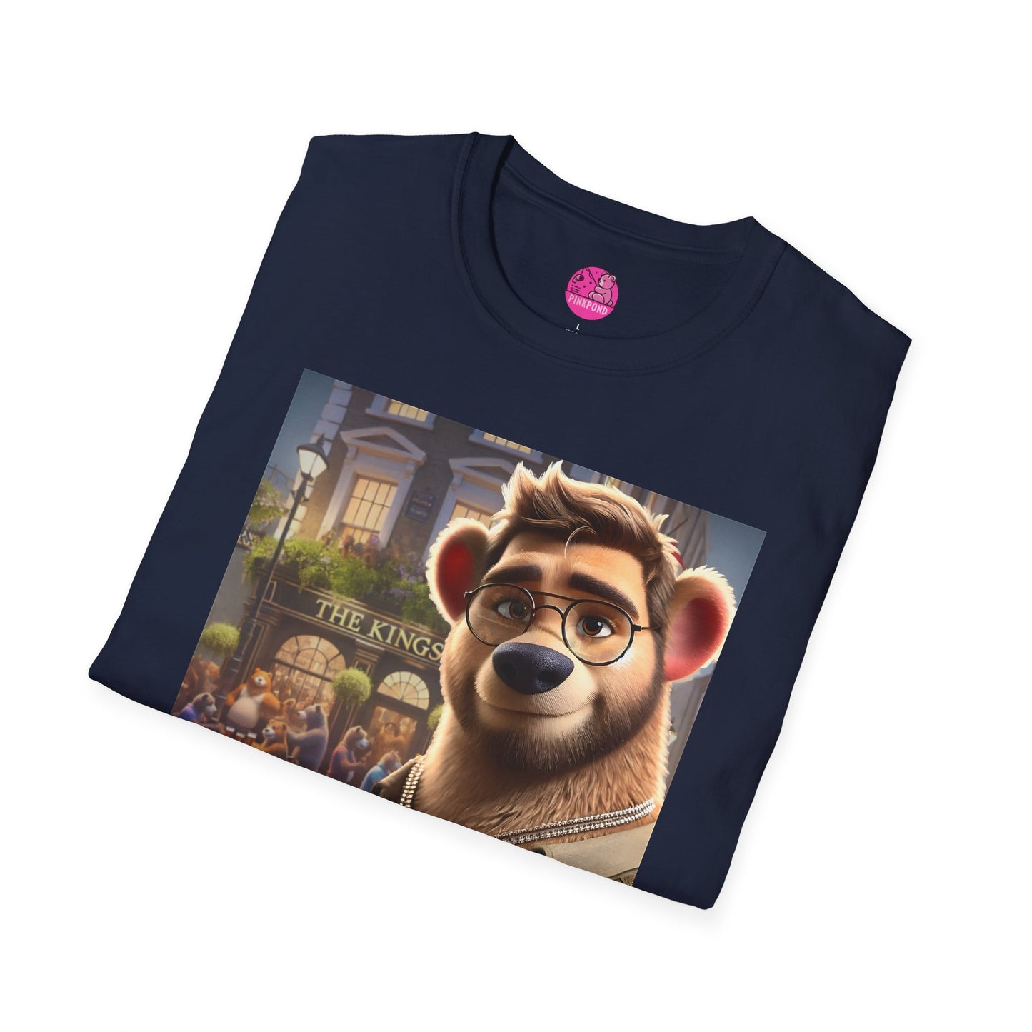 Step into a fantasy version of Soho, where the streets are alive with laughter, camaraderie, and a welcoming den of bears at The King’s Arms. This T-Shirt captures the energy of a bustling pub scene, inviting you to be part of the furry, friendly, and free-spirited world of PinkPond. The design features a suave, effortlessly cool bear figure dressed for adventure, ready to own the scene. Perfect for those who enjoy fantasy, urban sophistication, and playful charm. Ideal for casual wear, nights out, and celebrating with friends. Relevant for celebrations, nightlife, and fantasy enthusiasts.