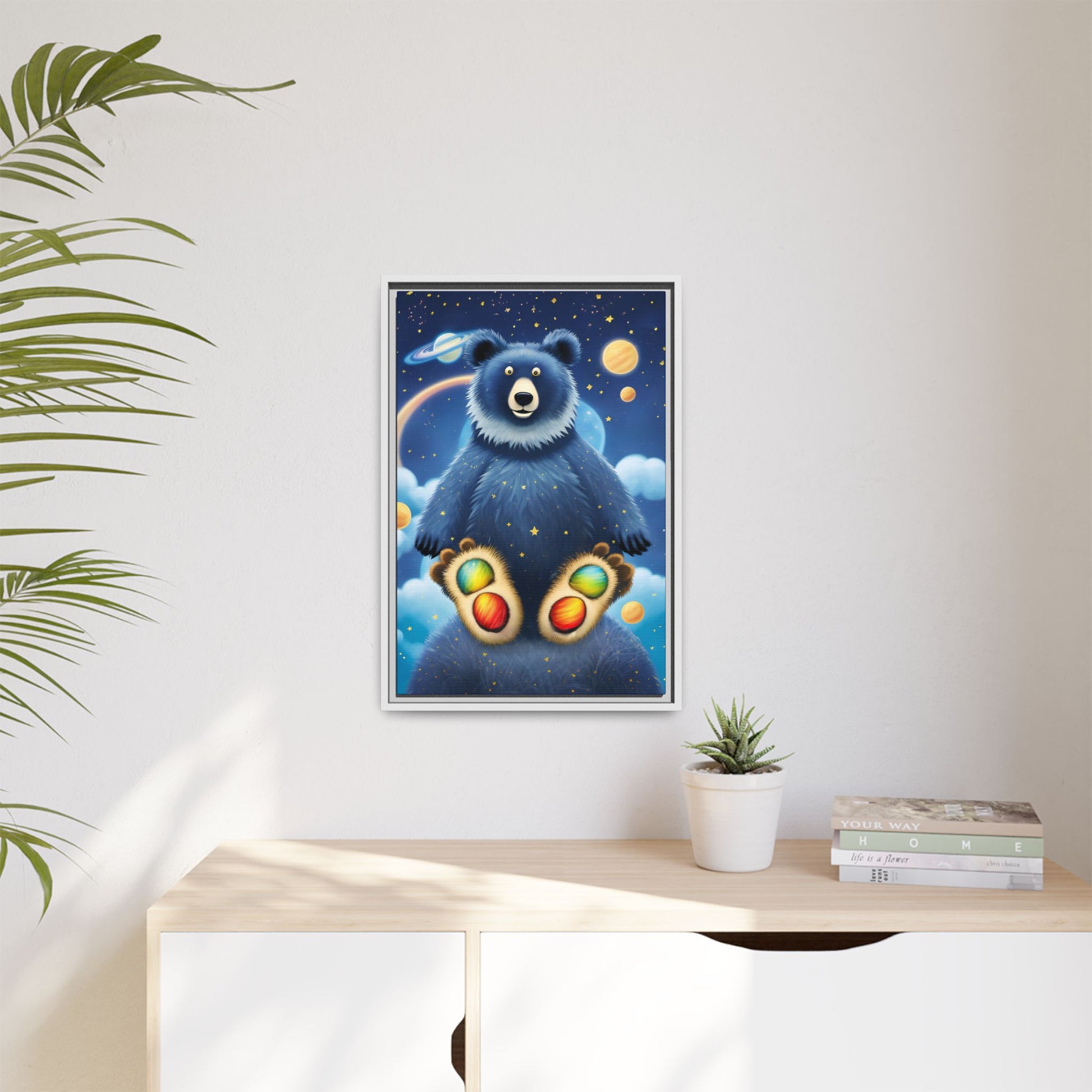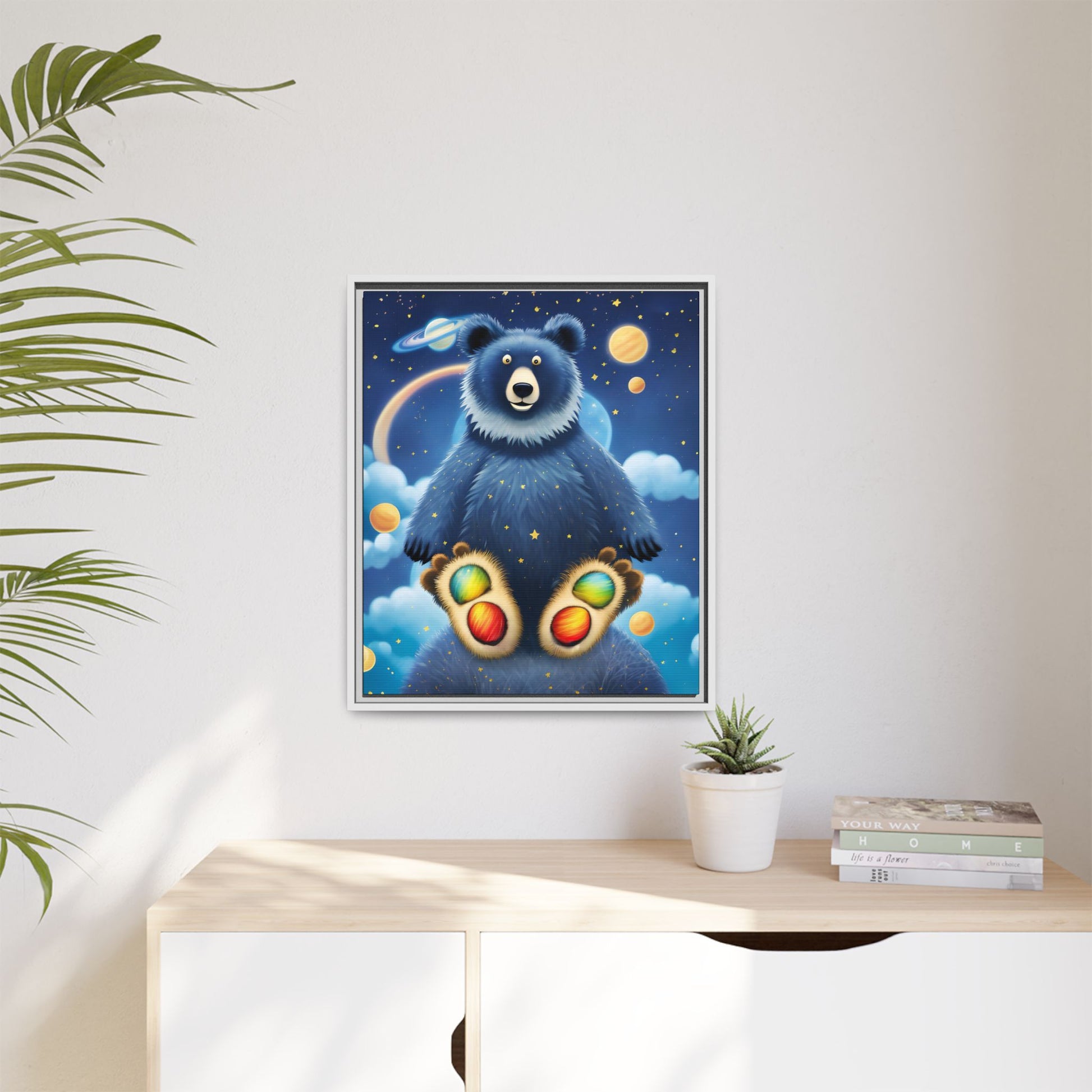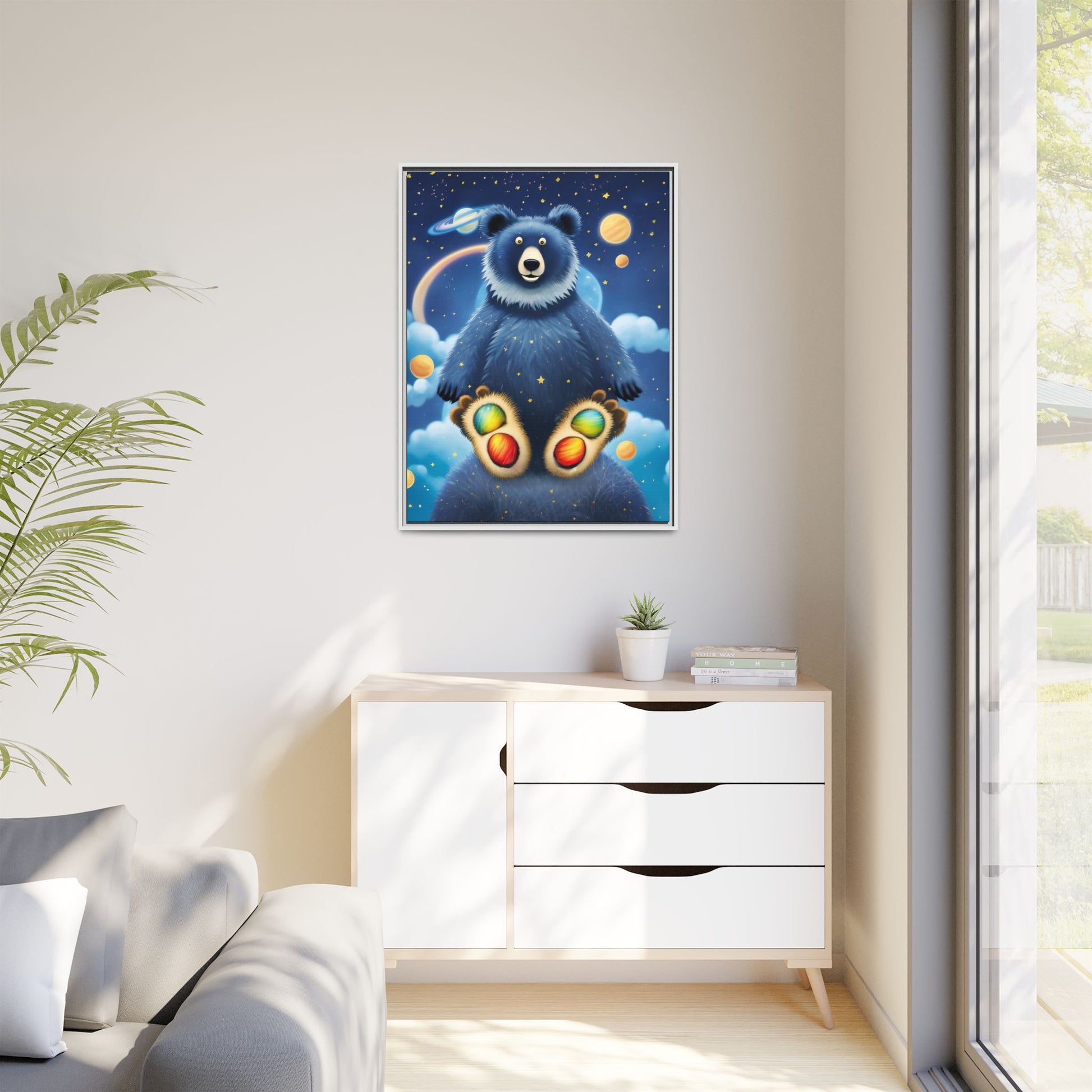 Step into a world where the cosmos meets creativity with this striking 'Cosmic Pawprints' canvas art featuring a majestic space bear resting among the stars. Ideal for modern interiors, children's rooms, or any space that celebrates creativity and bold design. Perfect for unique decor, collectors, or as a bold gift choice, this artwork sparks imagination and captures a sense of wonder and adventure. Relevant for space enthusiasts, art lovers, and those who appreciate surreal elements. Great for gifting on birthdays, holidays, or special occasions.