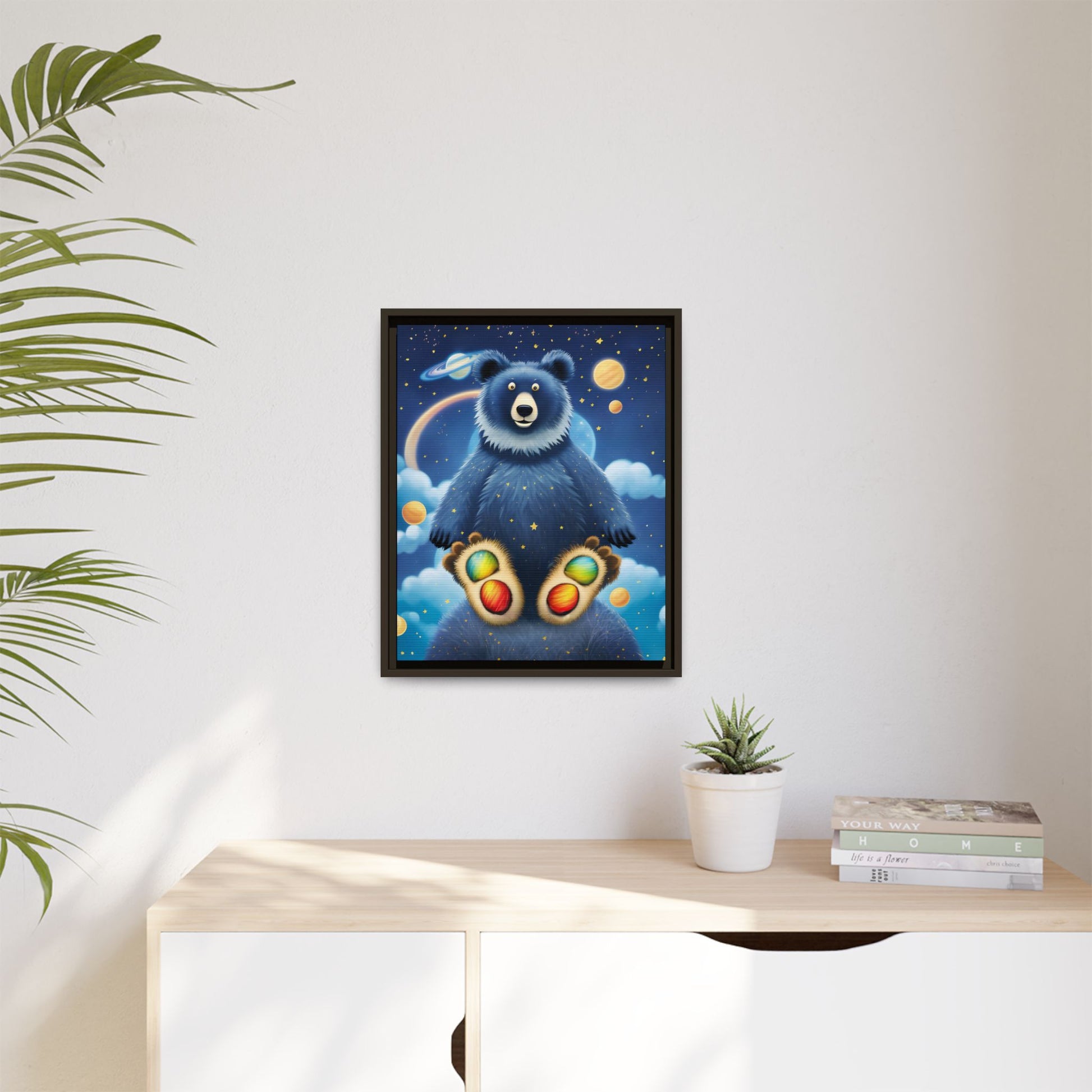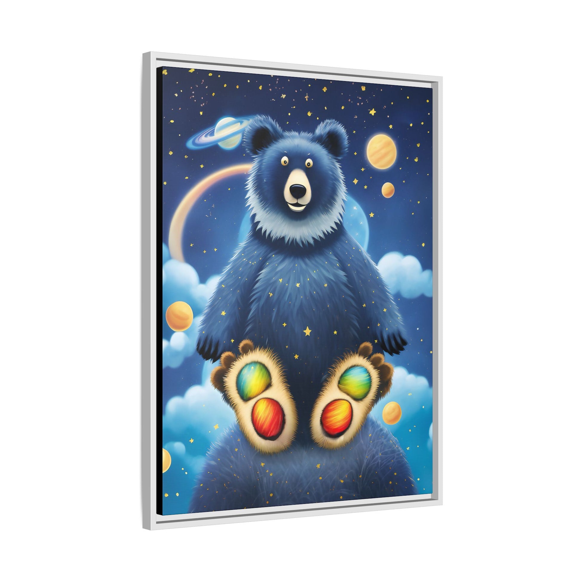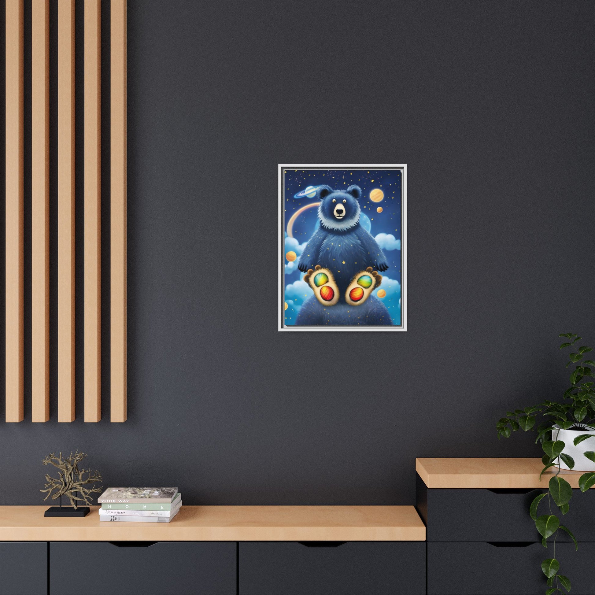 Step into a world where the cosmos meets creativity with this striking 'Cosmic Pawprints' canvas art featuring a majestic space bear resting among the stars. Ideal for modern interiors, children's rooms, or any space that celebrates creativity and bold design. Perfect for unique decor, collectors, or as a bold gift choice, this artwork sparks imagination and captures a sense of wonder and adventure. Relevant for space enthusiasts, art lovers, and those who appreciate surreal elements. Great for gifting on birthdays, holidays, or special occasions.