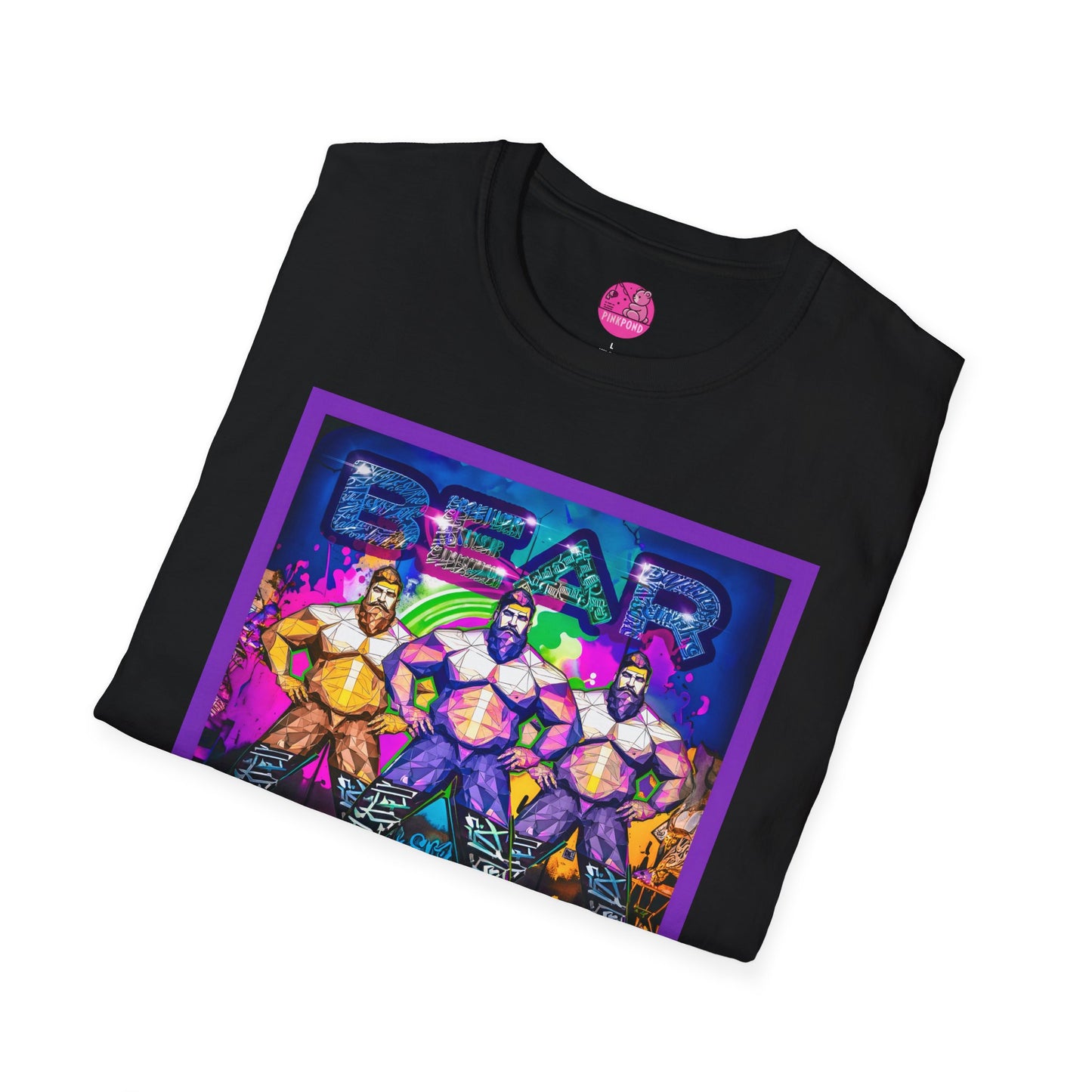 Make a bold statement with the Neon Edition of BEAR BAIT—a vivid and electrifying take on the original design. This striking T-shirt features a powerful trio of rugged, geometric bears, infused with neon hues, graffiti-inspired splashes, and high-energy color contrasts that demand attention.