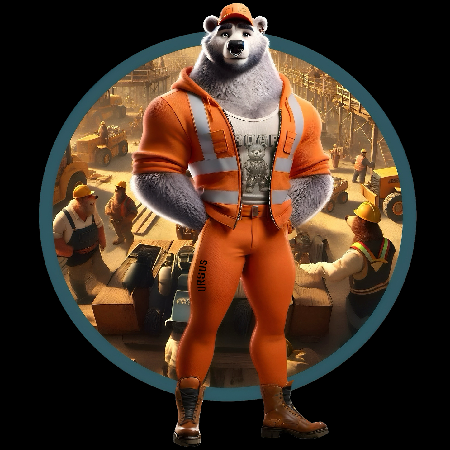 The 'Ursus Works' Tee is a bold and stylish t-shirt featuring a powerhouse polar bear in high-vis workwear, exuding strength, camaraderie, and charm. Perfect for bear lovers, workwear fans, and those who appreciate a tee with character. This tee brings industrial grit and fun personality into your wardrobe, whether you're at the job site or enjoying a laid-back day off.