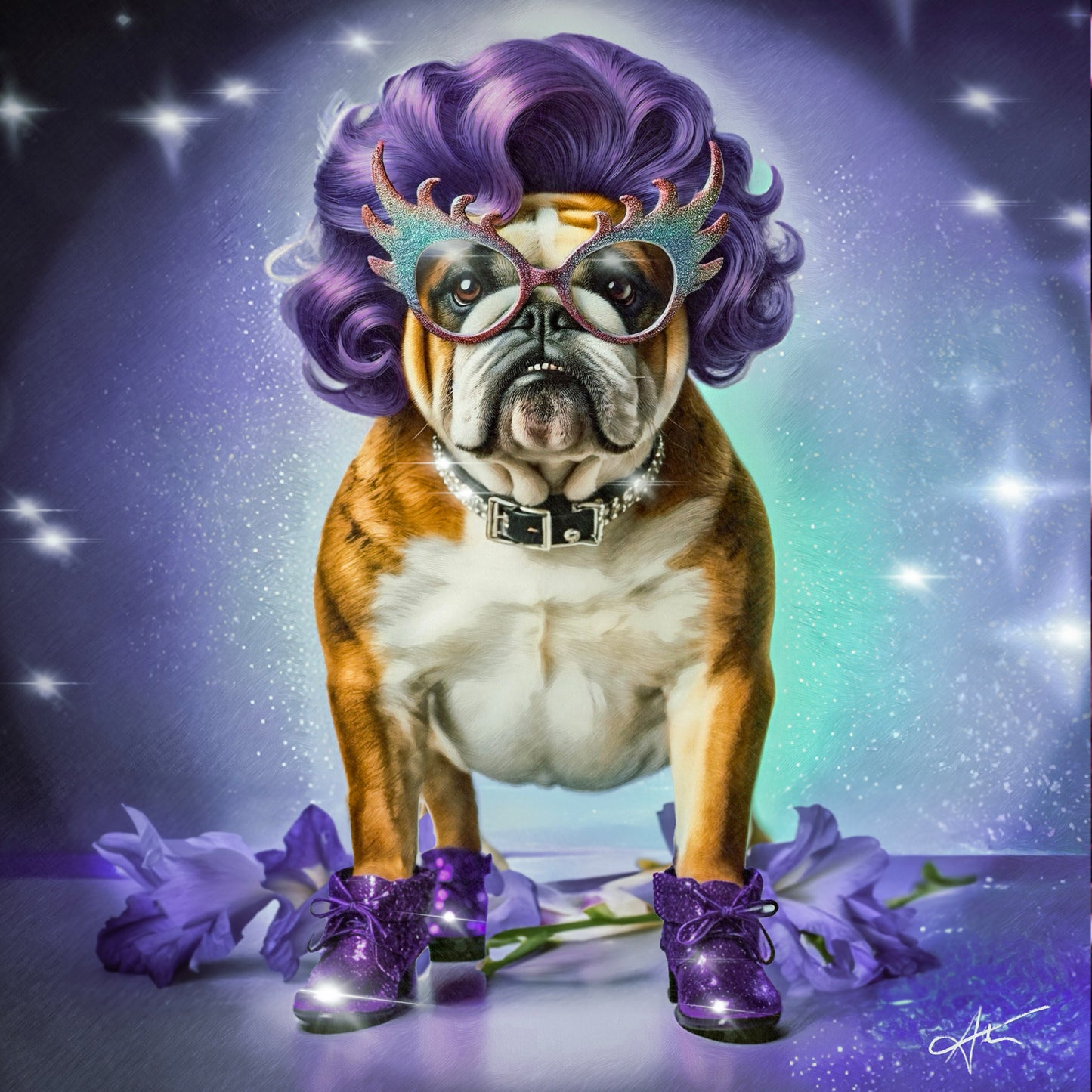 Unleash the ultimate diva energy with this bold, fabulous tee featuring a glamorous bulldog channelling Dame Edna’s iconic style. Made from soft, high-quality fabric, this tee is as comfortable as it is fabulous. Ideal for dog lovers, drag fans, and anyone who loves a bit of camp and sparkle. Express your fabulous side – grab yours today!
