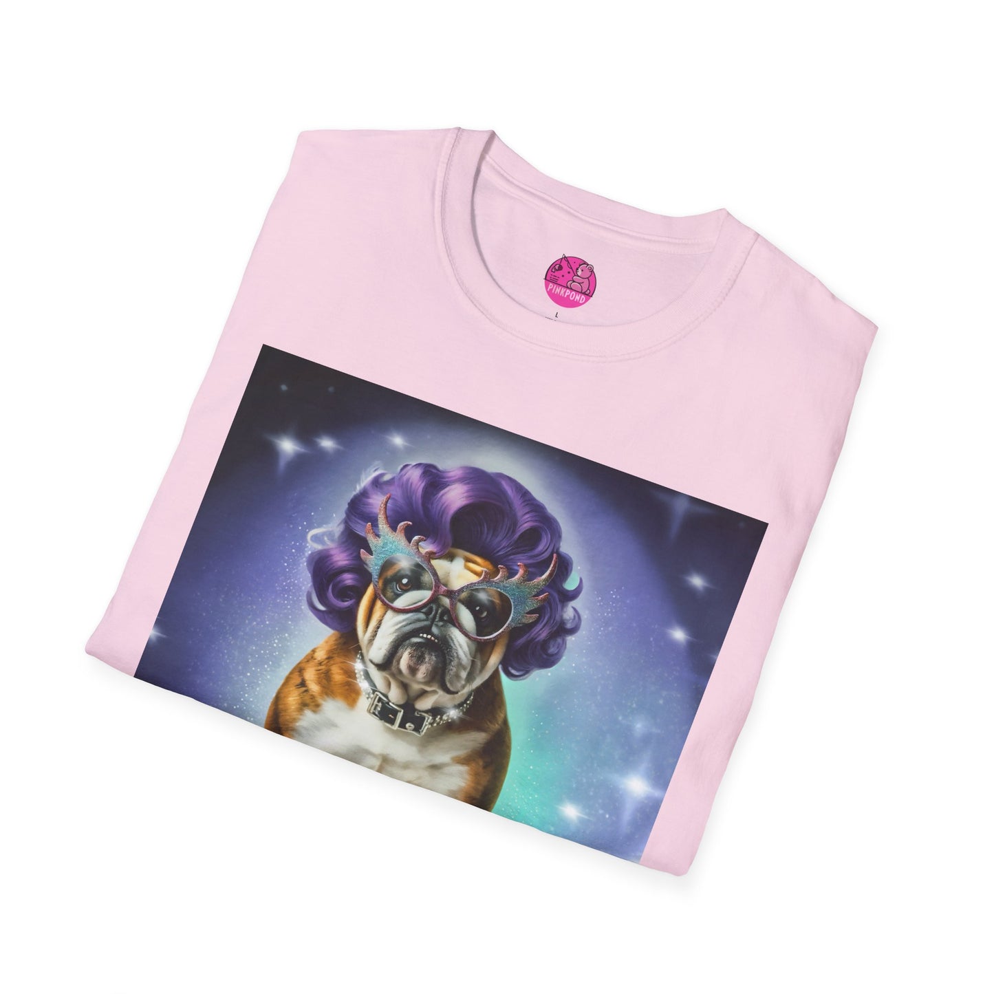 Dame Edna Bulldog T-Shirt - Fabulous & Fetching Unisex Softstyle Tee for Dog Lovers and Drag Fans