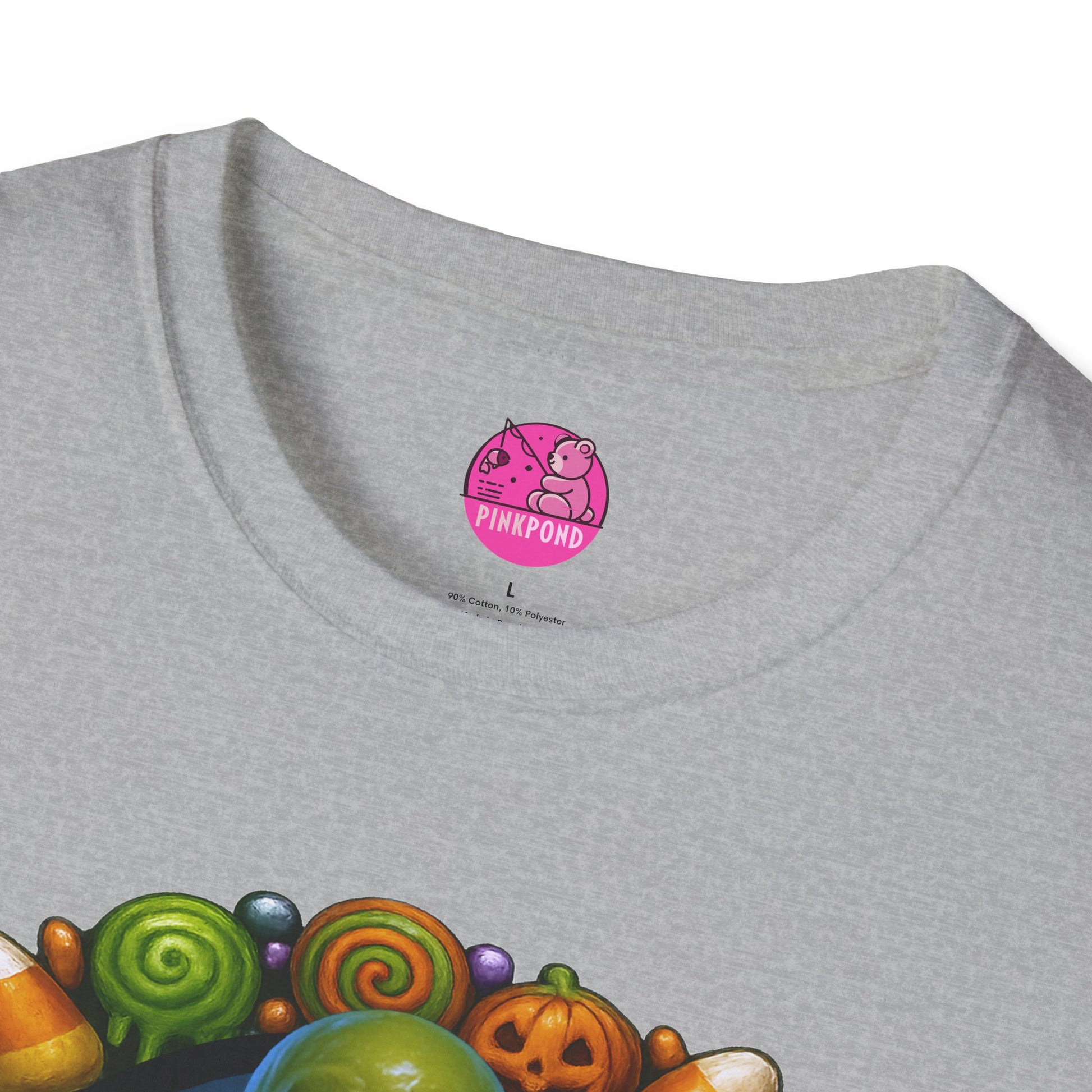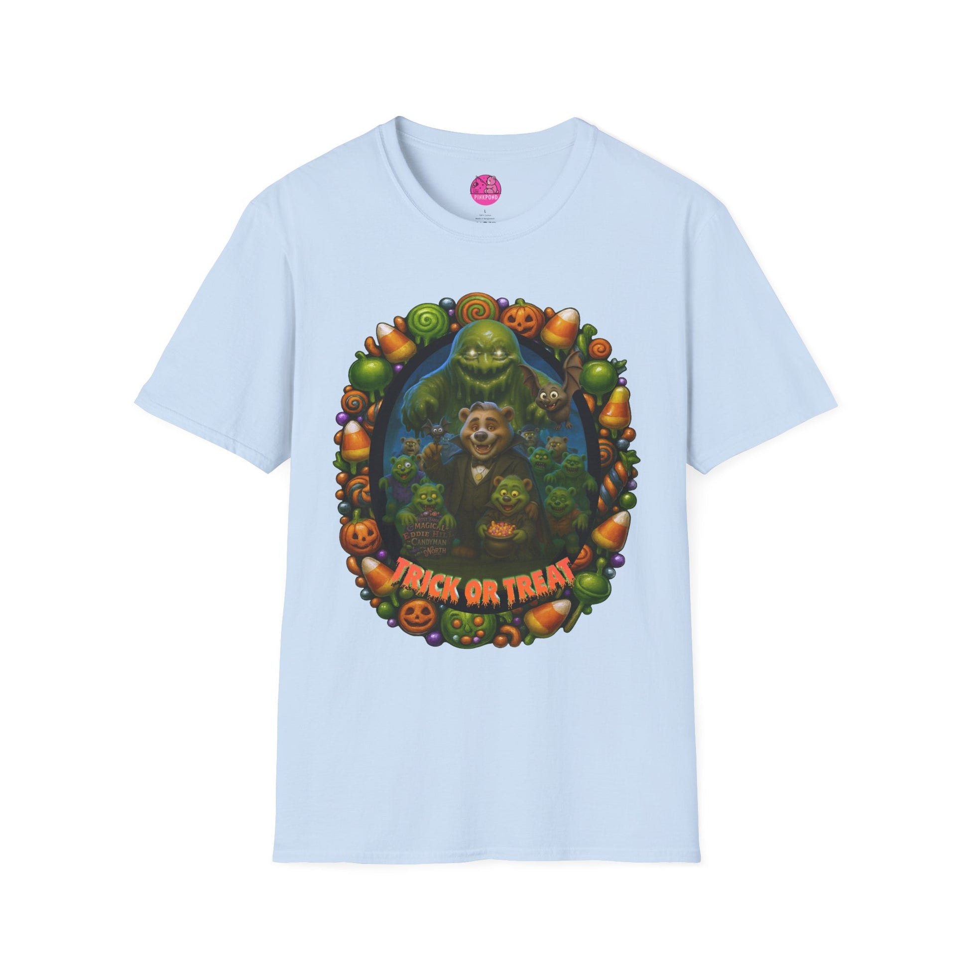Immerse yourself in PinkPond’s Halloween universe with this exclusive one-off digital artwork T-shirt featuring the Most Fabulous Magical Eddie Hill, Candyman of the North as a dapper vampire bear. Perfect for collectors who appreciate PinkPond's playful and detailed 3D digital style, this shirt exudes a cinematic Halloween vibe with mischievous green bear-goblins and a cheeky bat framed by candy corn and pumpkins. A bold TRICK OR TREAT slogan adds a festive touch to this premium cotton shirt.