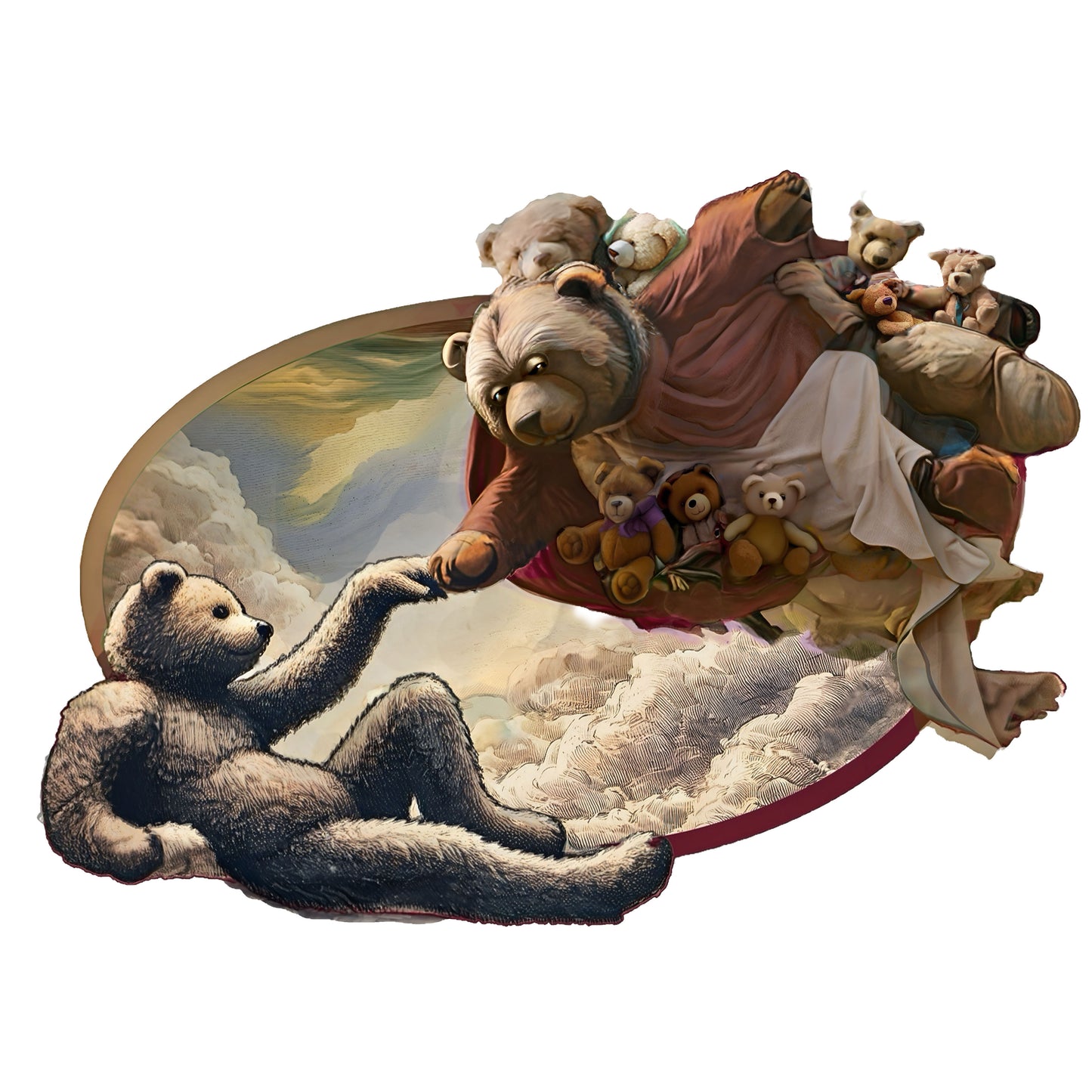 Experience art like never before with The Creation of Teddy T-shirt. This brilliant design reimagines Michelangelo’s iconic fresco with a delightful twist—swapping divine figures for adorable teddy bears. Perfect for art lovers, teddy bear enthusiasts, and anyone who enjoys a clever and lighthearted take on historical masterpieces. A unique conversation starter that adds humor and charm to your wardrobe.