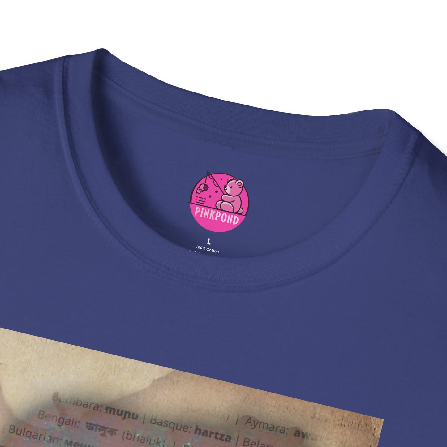 Celebrate bears worldwide with the Babel Bear T-Shirt. This eye-catching design features a bold bear silhouette filled with the word 'bear' in dozens of languages, symbolizing the unity of nature and human culture. Perfect for nature lovers, language enthusiasts, and bear fans, this tee is versatile for casual wear, travel, or outdoor adventures. Whether you prefer a sleek, high-contrast look on a dark tee or a crisp, bold statement on a light background, the Babel Bear stands out wherever you go.