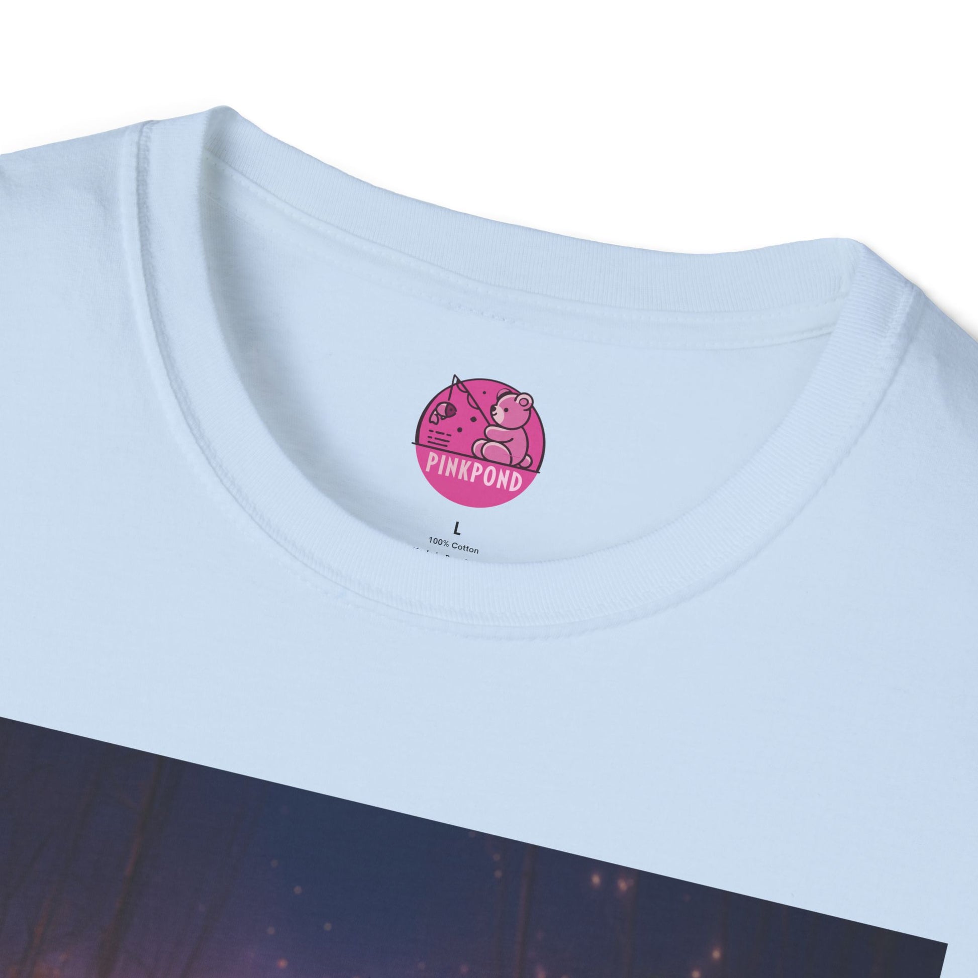 Dusk settles like a soft exhale. The Meditating Bear — Dusk Dreamscape design wraps the tee in a hush of pastel purples and rosy blues: a plush bear perched on a river stone, firefly sparkles drifting through bamboo, koi gliding beneath a mirrored pond, and a shimmering ribbon of “OMMMM” curling through the cool evening air. This shirt feels like that small, suspended moment between day and night — quiet, dreamy, and gently restorative. Wear it when you want your world to slow down: for late walks, quiet tea on the porch, evening meditation, or nights when you simply need to breathe. The imagery reads like a short, private ritual; it’s subtle enough to layer under a jacket but expressive enough to set the tone for a calm night out or a slow morning in.