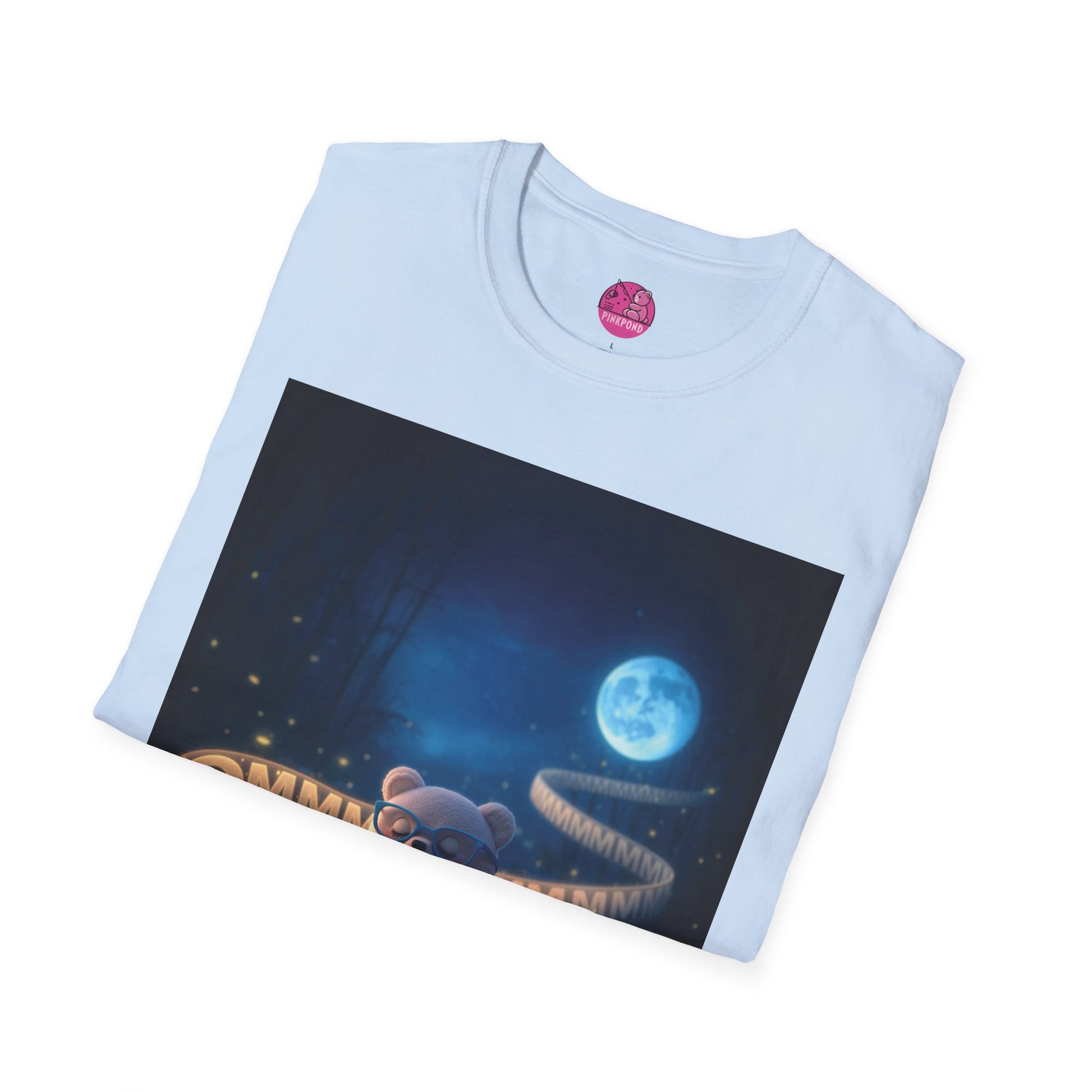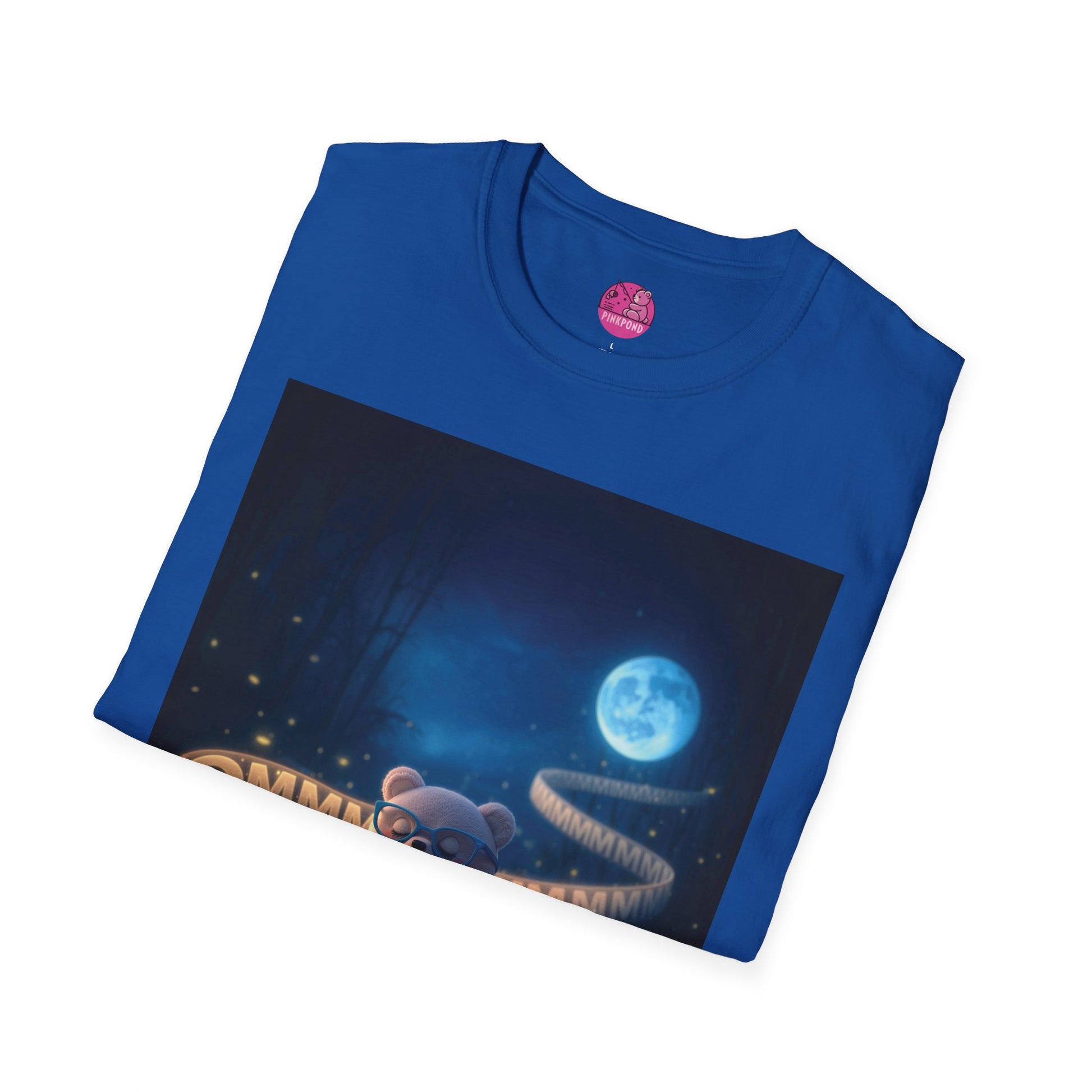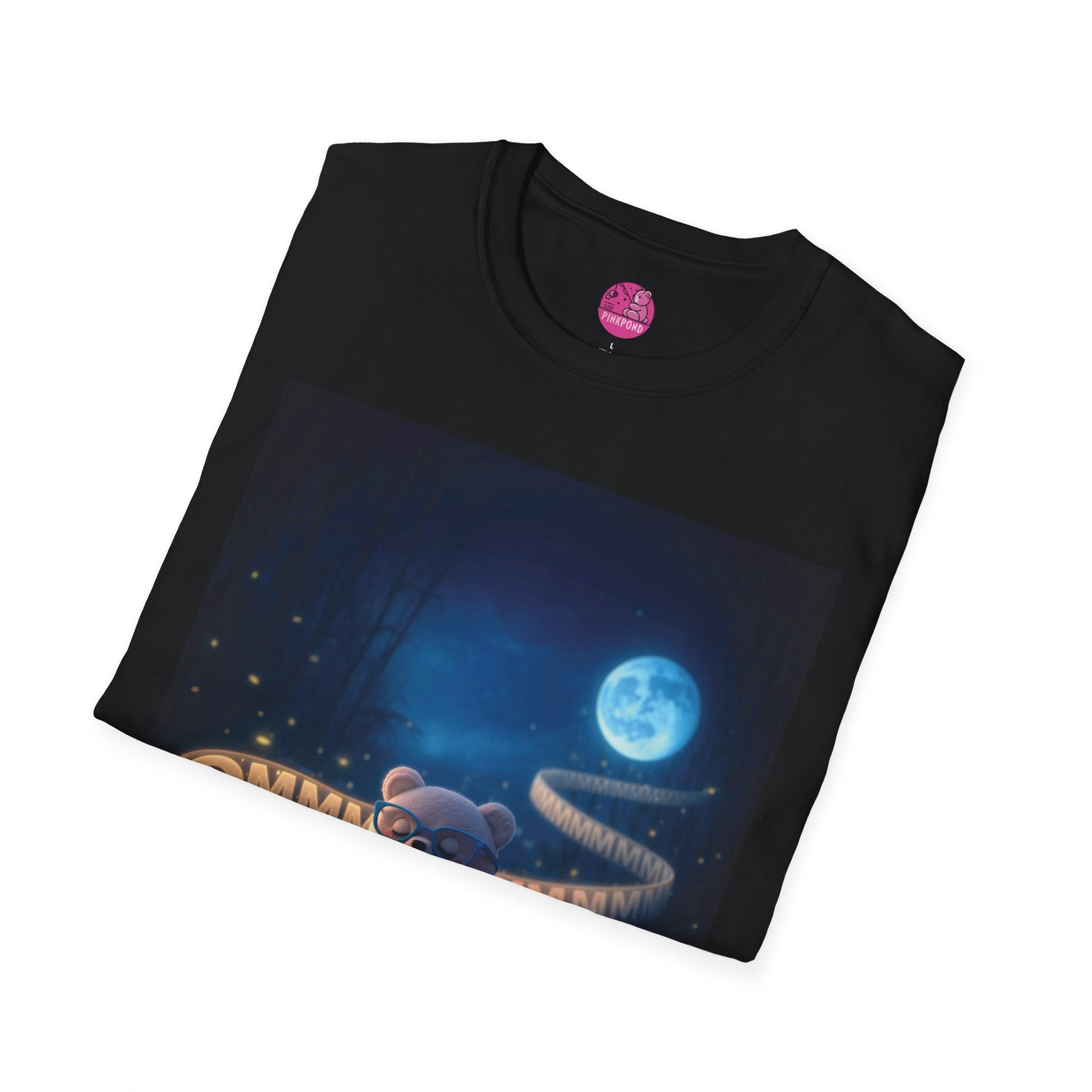 Float into a moonlit hush with this Meditating Bear tee — a soft, wearable pause that carries a little night-time calm wherever you go. The design centers a plush, tranquil bear perched on a smooth river stone beneath a glowing full moon. Bamboo fronds sway in the dark, fireflies drift like tiny lanterns, and a ribbon of “OMMMM” curls up into the cool air while koi glide through a starlit pond below. The art feels like a private midnight moment: quiet, gentle, and somehow wide open. Put it on after a long day to keep that deep-breath feeling with you during late walks, low-light gatherings, or cozy evenings by the window. It’s subtle enough to pair with jeans or a cardigan, and distinctive enough to start soft conversations with other night wanderers and zen seekers.