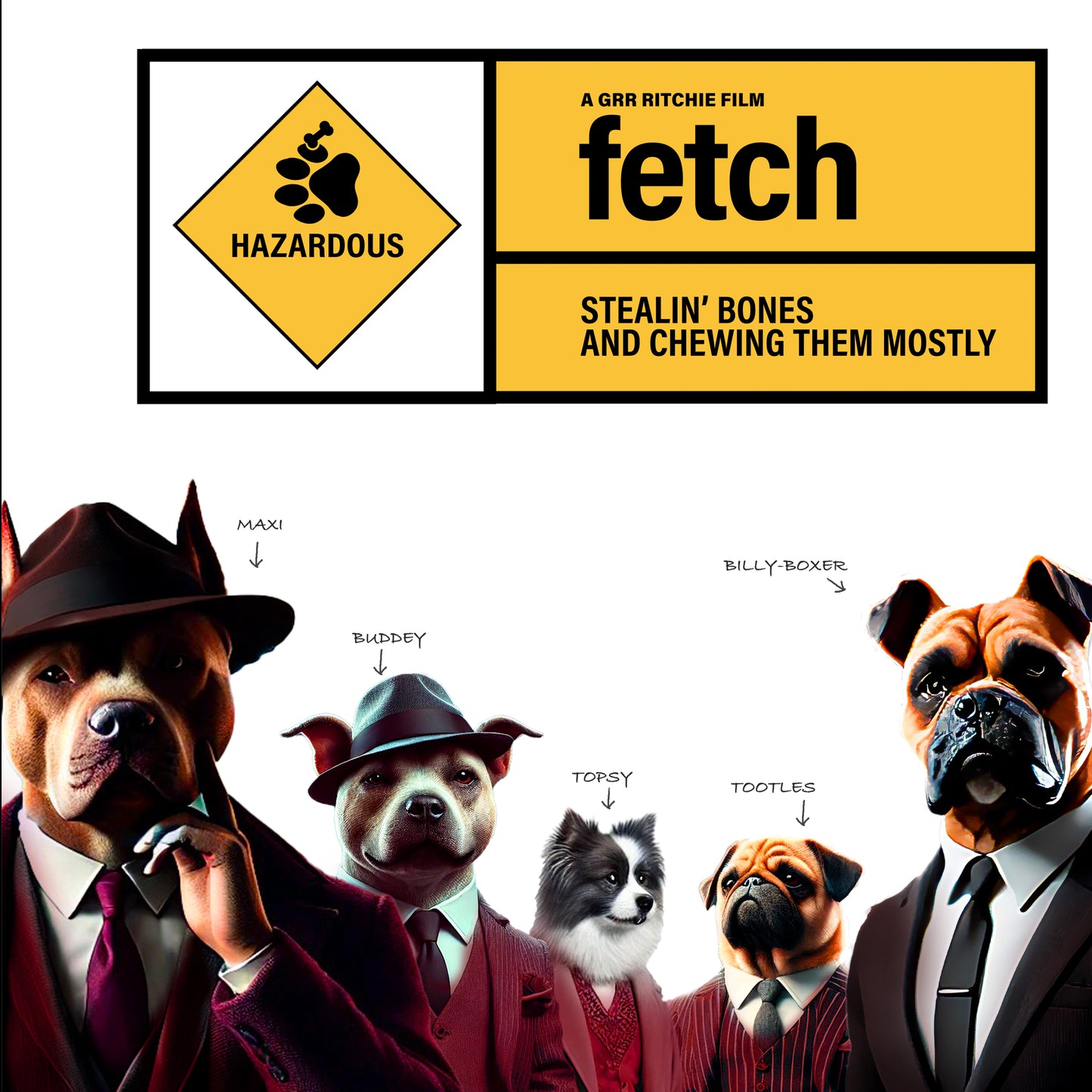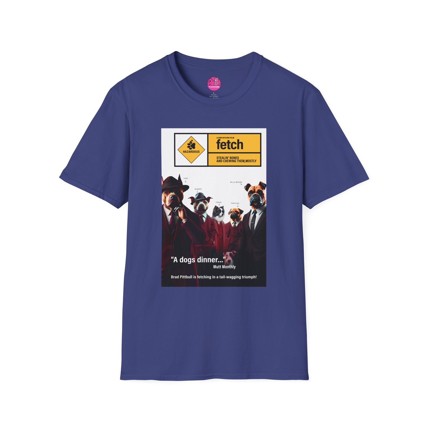 Unleash your inner mobster with this Fetch movie parody tee—a tail-wagging tribute to Snatch with a canine twist. Featuring Brad Pittbull and his gang of slick, four-legged crooks, this design captures the gritty charm of a Grr Ritchie crime caper. Dressed to impress (and possibly steal your bones), these dapper dogs bring attitude, style, and plenty of bite. Perfect for movie buffs, dog lovers, and anyone who appreciates a good pun. Ideal for casual wear, movie nights, dog-themed events, and as a unique gift for dog owners.