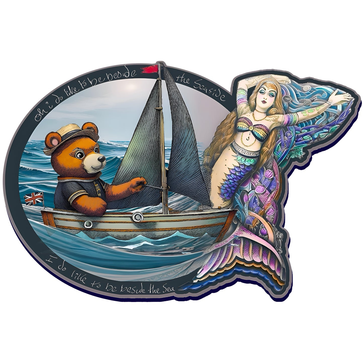 Nautical Tee - Beside the Sea Teddy Bear and Mermaid