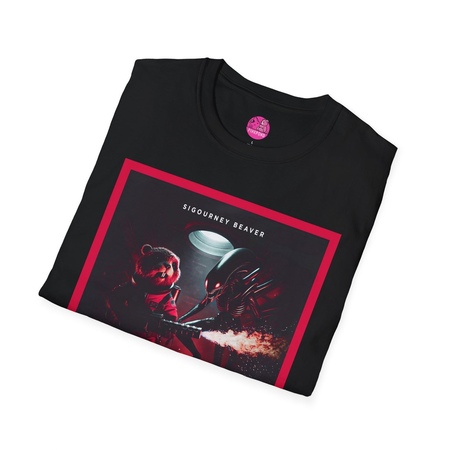 Elevate your love of sci-fi and comedy with this exclusive T-Shirt featuring Sigourney Beaver in a Sci-Fi Parody Like No Other. This hilarious and visually stunning reimagining of the Alien franchise will add a unique and conversation-starting piece to any home, office, or geek den. Perfect for sci-fi fans, movie buffs, or anyone with a wicked sense of humor.
