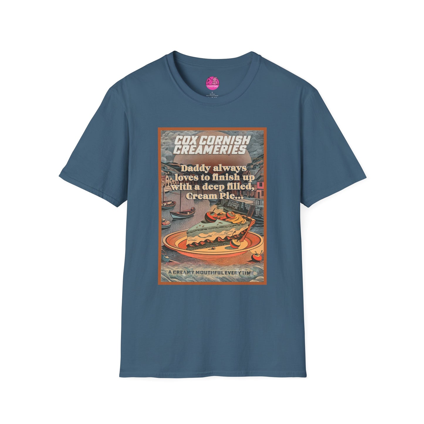 Add a cheeky twist to your wardrobe with the Cox Cornish Creameries – Deep-Filled Cream Pie T-shirt. Inspired by vintage British advertising, this eye-catching design combines classic retro aesthetics with a playful, tongue-in-cheek sense of humor. This T-shirt oozes nostalgia while delivering a witty, irreverent message that’s bound to get a reaction. Perfect for fans of vintage and British humor, it's a must-have for those who appreciate wit, style, and a bit of mischief. Whether you’re out for a pint, heading to the beach, or just love a good double entendre, this T-shirt is sure to turn heads and spark a few laughs.