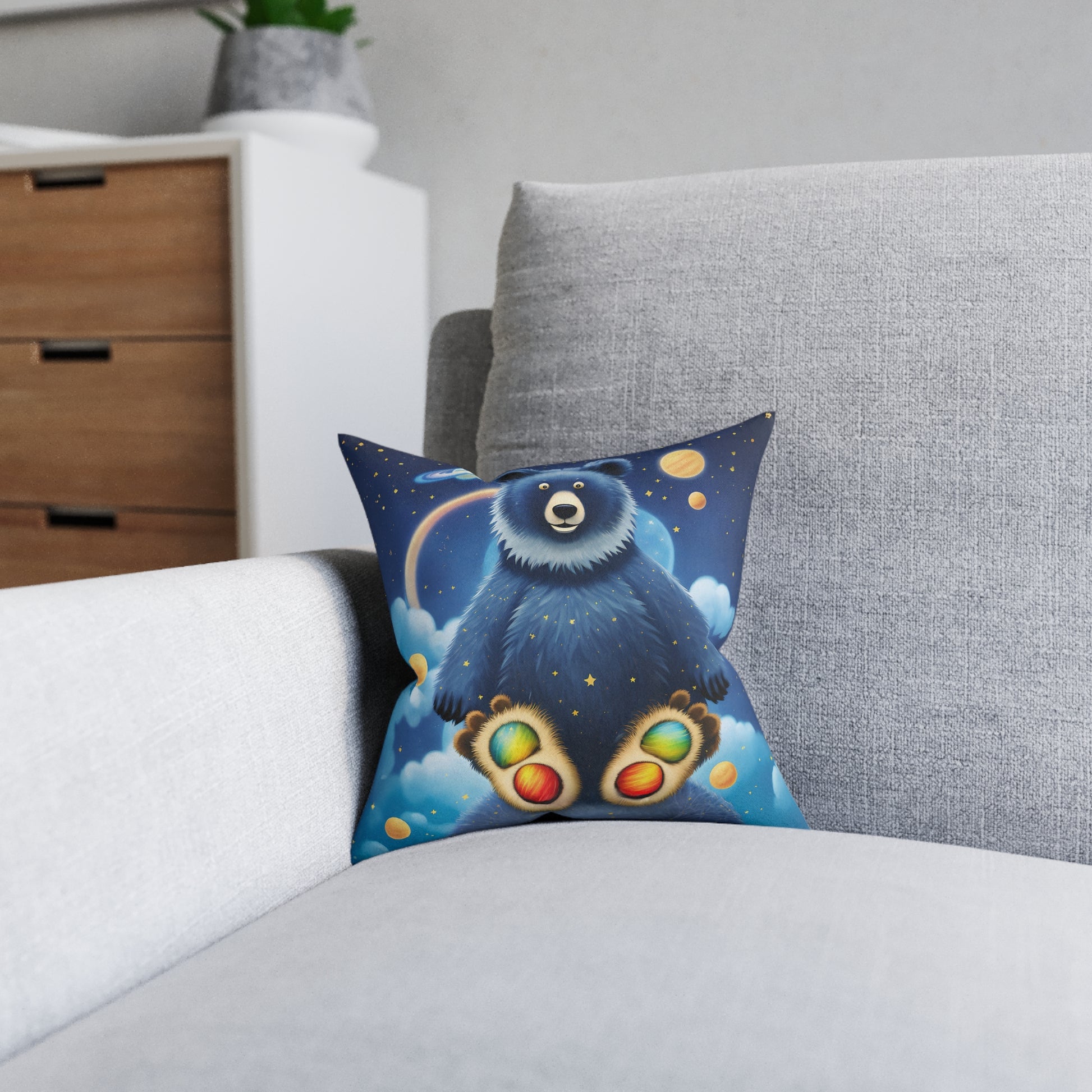 Square Pillow Cosmic Adventure Cushion - Double-Sided Cosmic Bear and Rocket Bear Design