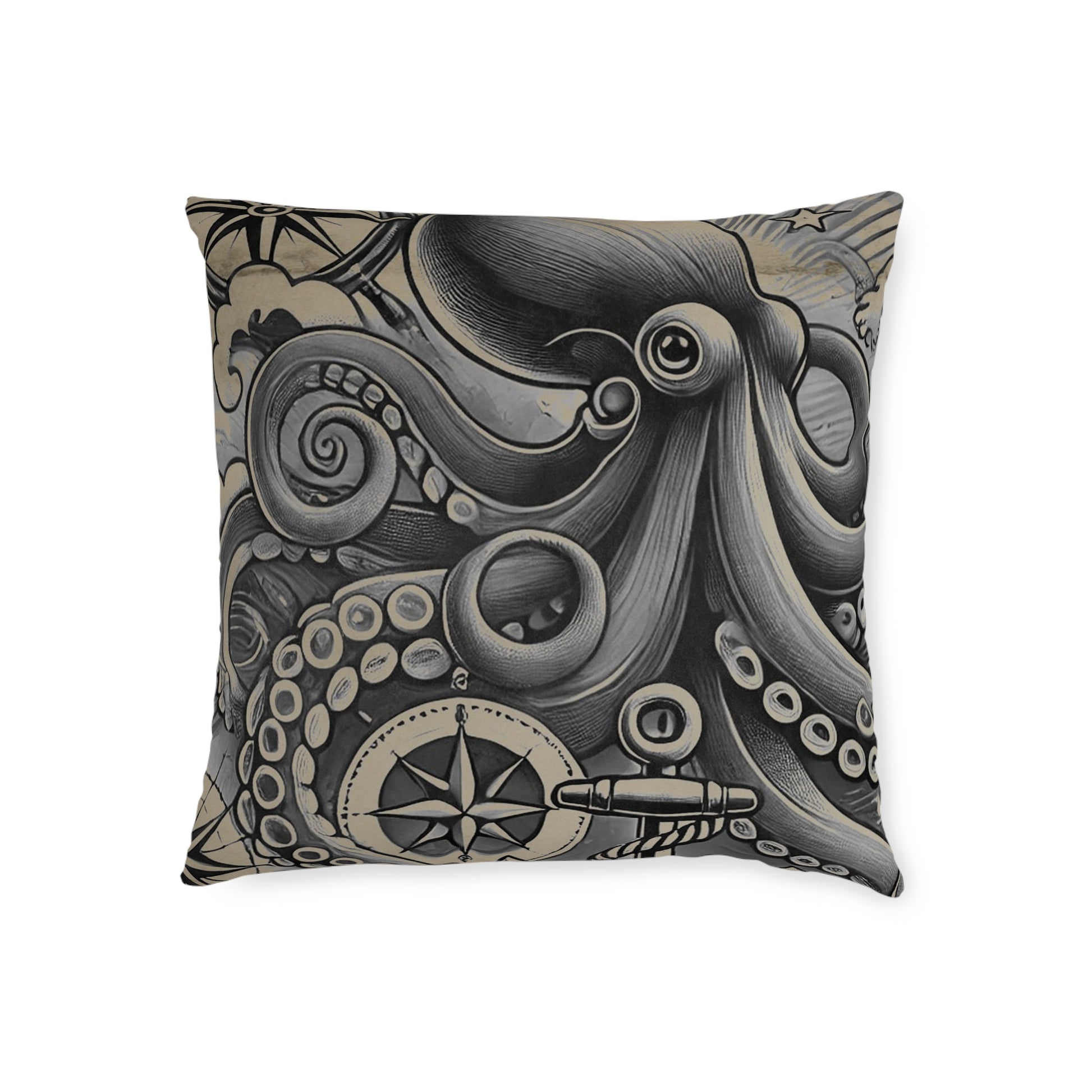 Make waves with this bold, reversible square pillow featuring a striking octopus design. Perfect for adding a nautical twist to your sofa, armchair, or bed, it's the kind of statement piece that makes your space feel instantly more adventurous. Relevant for sea lovers, nautical enthusiasts, and anyone looking to add a pop of color and drama to their space. Perfect for decorating during Halloween, talk like a pirate day, or any ocean-themed events.