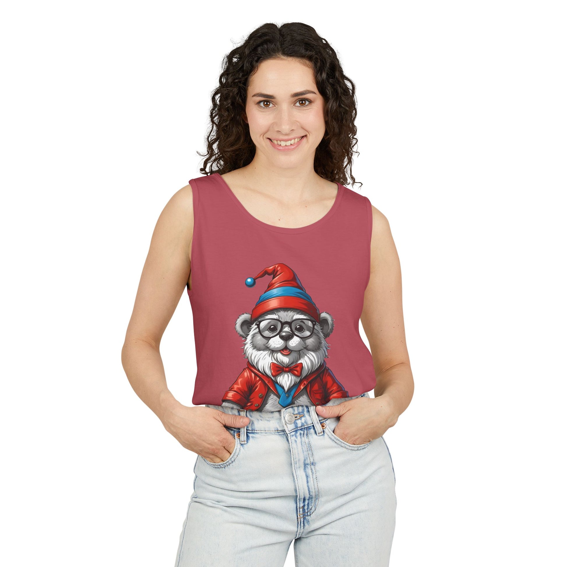 Swiss Gnome Bear Tank Top - Unisex Garment-Dyed Summer Sleeveless Shirt