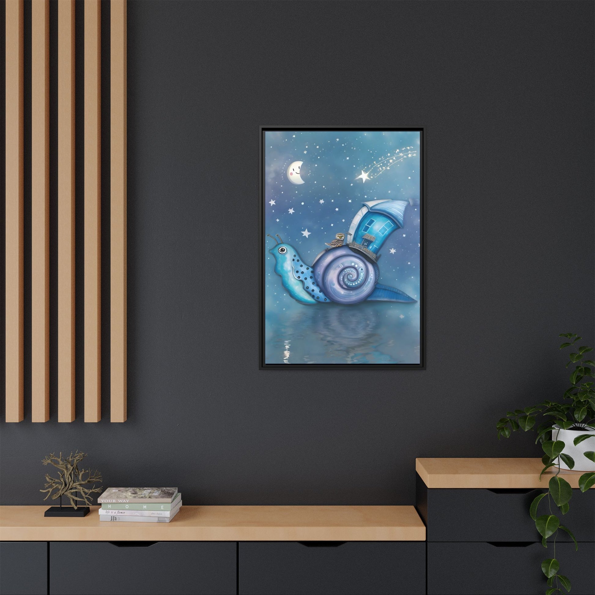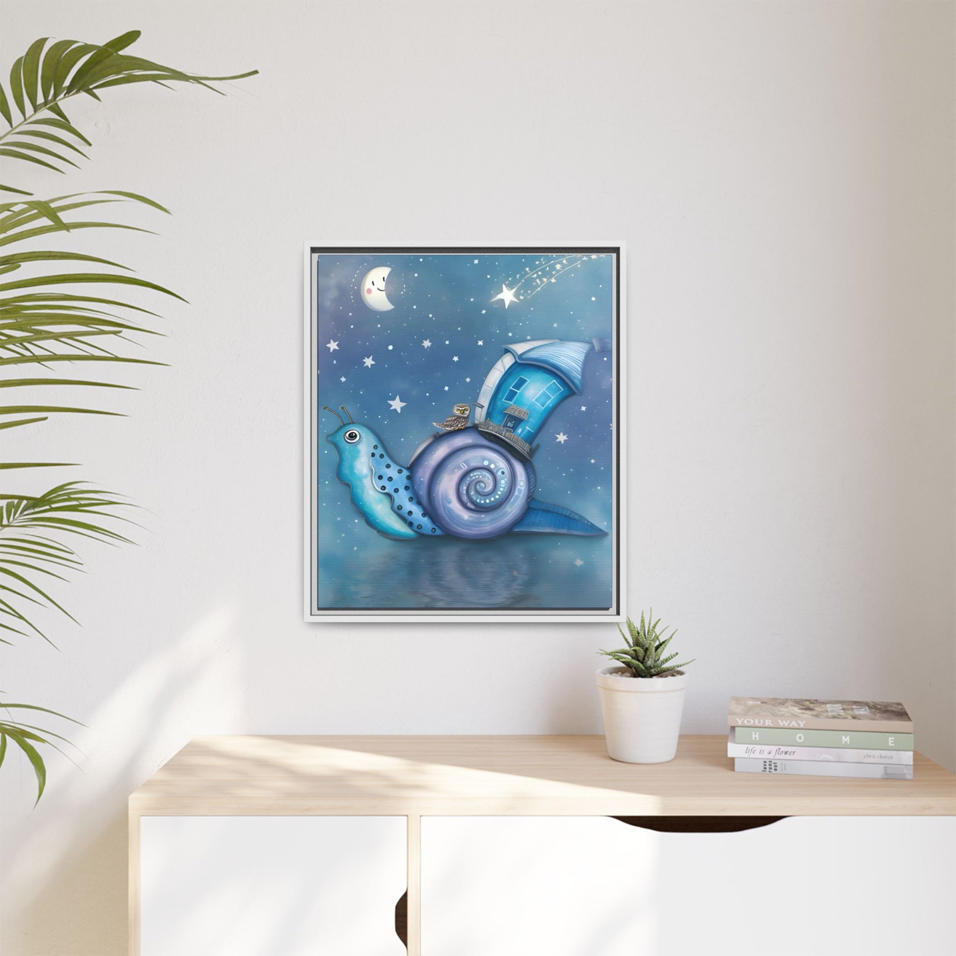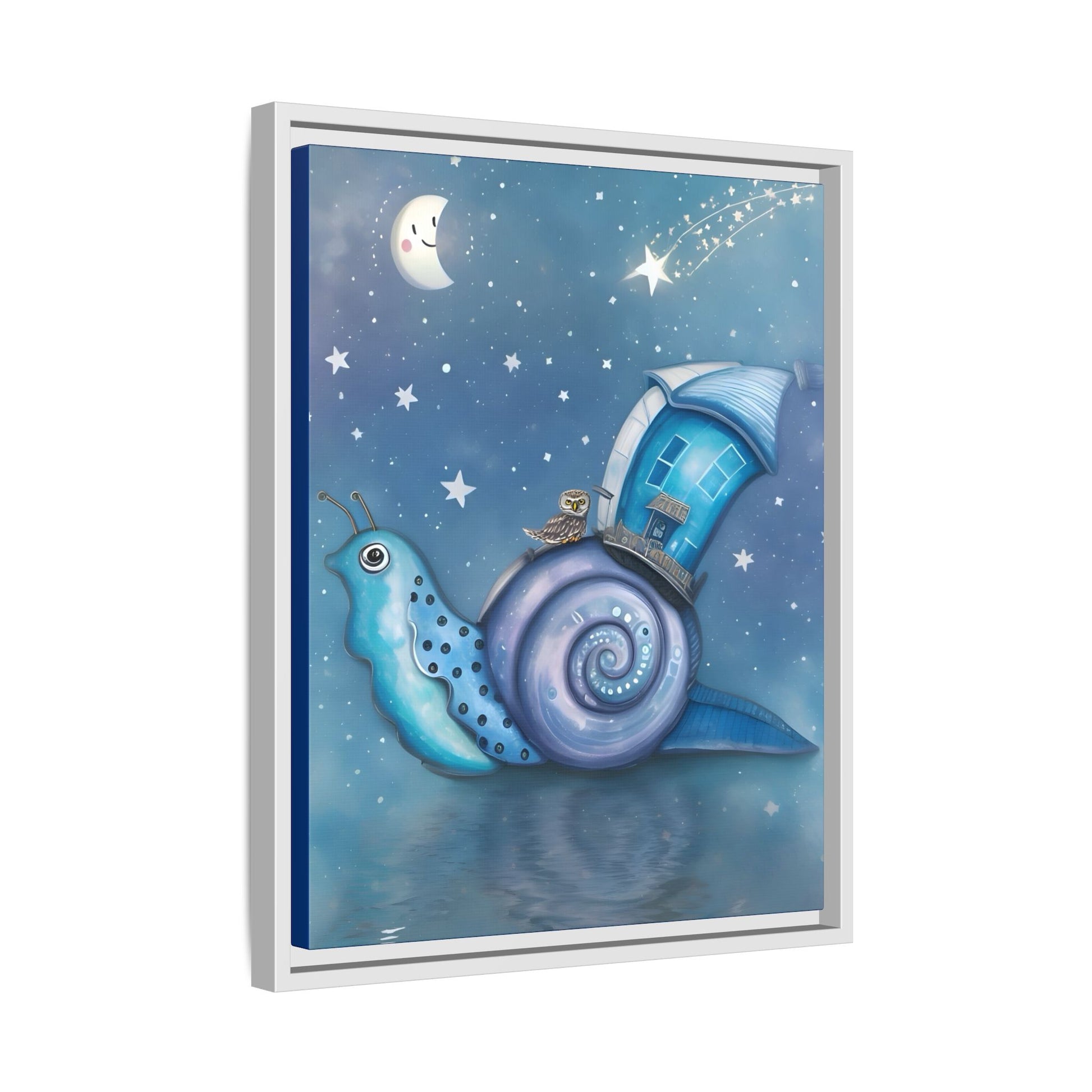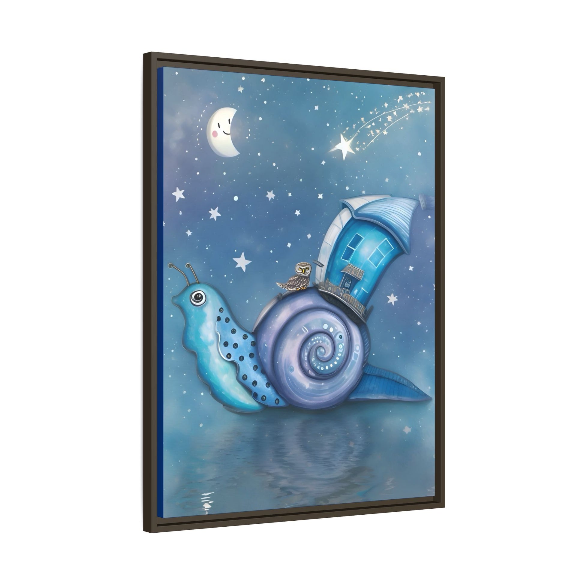 Step into a dreamlike journey with 'The Owl and the Snail Glided Upon a Sea of Stars' canvas print. Blending mystery, wonder, and celestial beauty, this mesmerizing artwork evokes a sense of tranquility, magic, and endless adventure. Perfect for stargazers, dreamers, and lovers of the extraordinary, this piece is a true conversation starter whether displayed in your home, office, or creative space. Relevant for those who appreciate surreal aesthetics and cosmic landscapes, ideal for adding a touch of whimsy to any setting. Suitable for occasions like birthdays, housewarmings, and holidays.