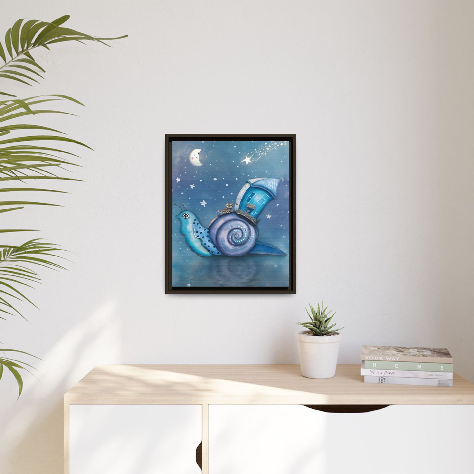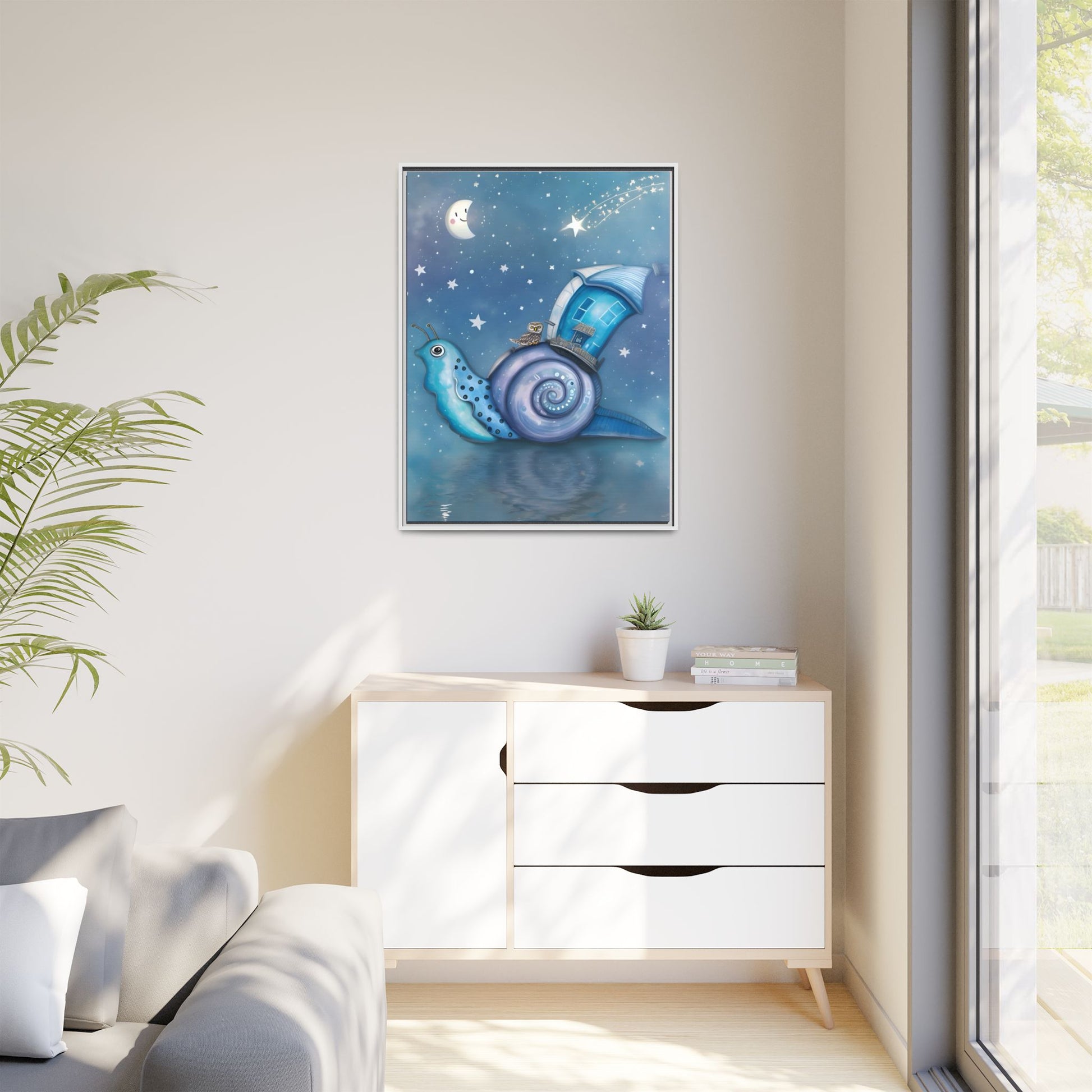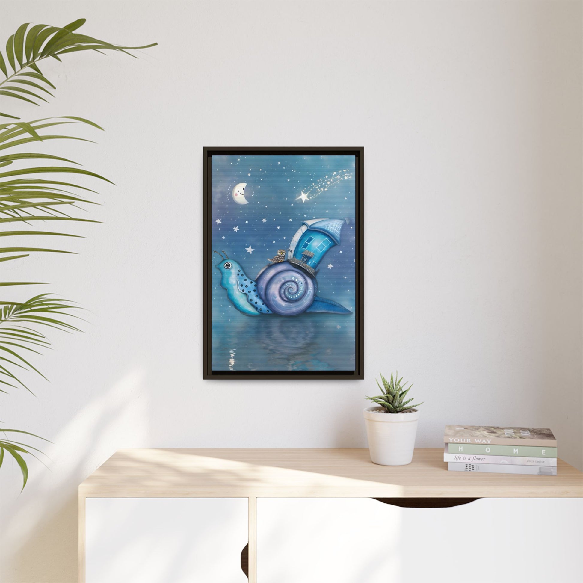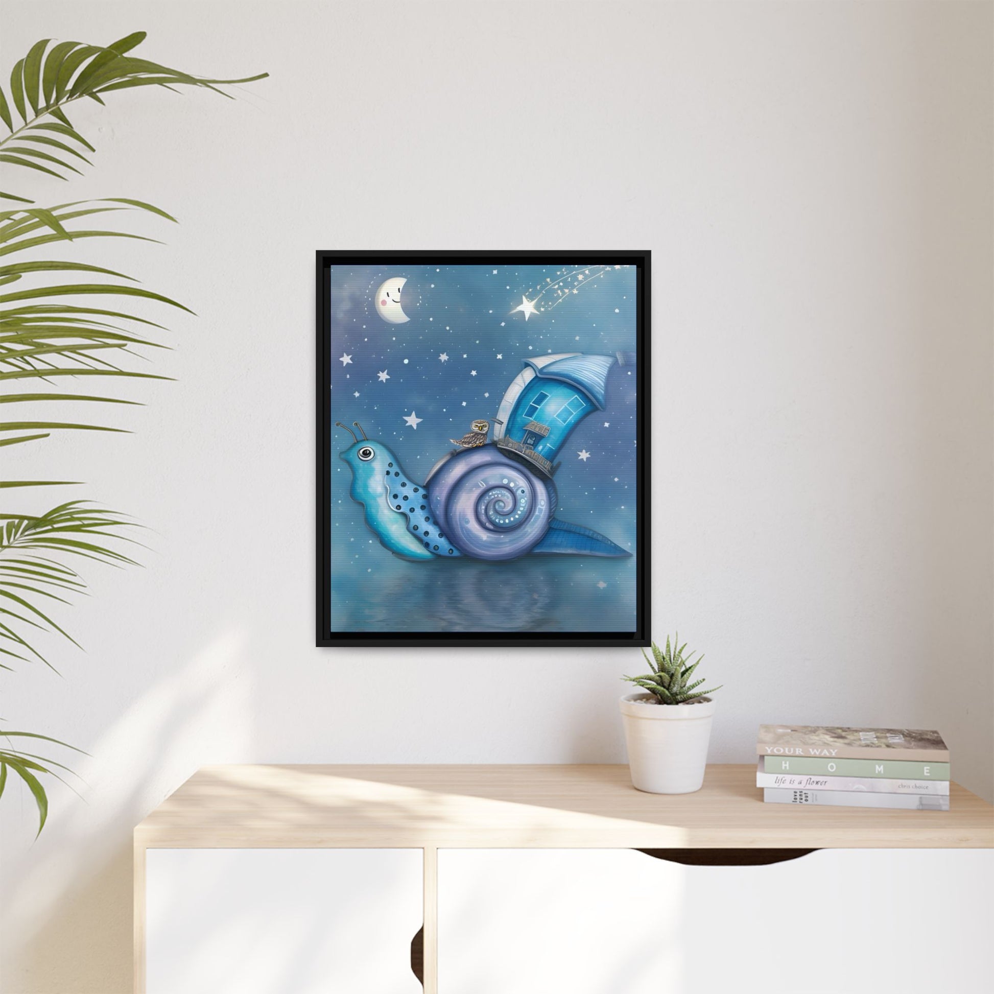 Step into a dreamlike journey with 'The Owl and the Snail Glided Upon a Sea of Stars' canvas print. Blending mystery, wonder, and celestial beauty, this mesmerizing artwork evokes a sense of tranquility, magic, and endless adventure. Perfect for stargazers, dreamers, and lovers of the extraordinary, this piece is a true conversation starter whether displayed in your home, office, or creative space. Relevant for those who appreciate surreal aesthetics and cosmic landscapes, ideal for adding a touch of whimsy to any setting. Suitable for occasions like birthdays, housewarmings, and holidays.