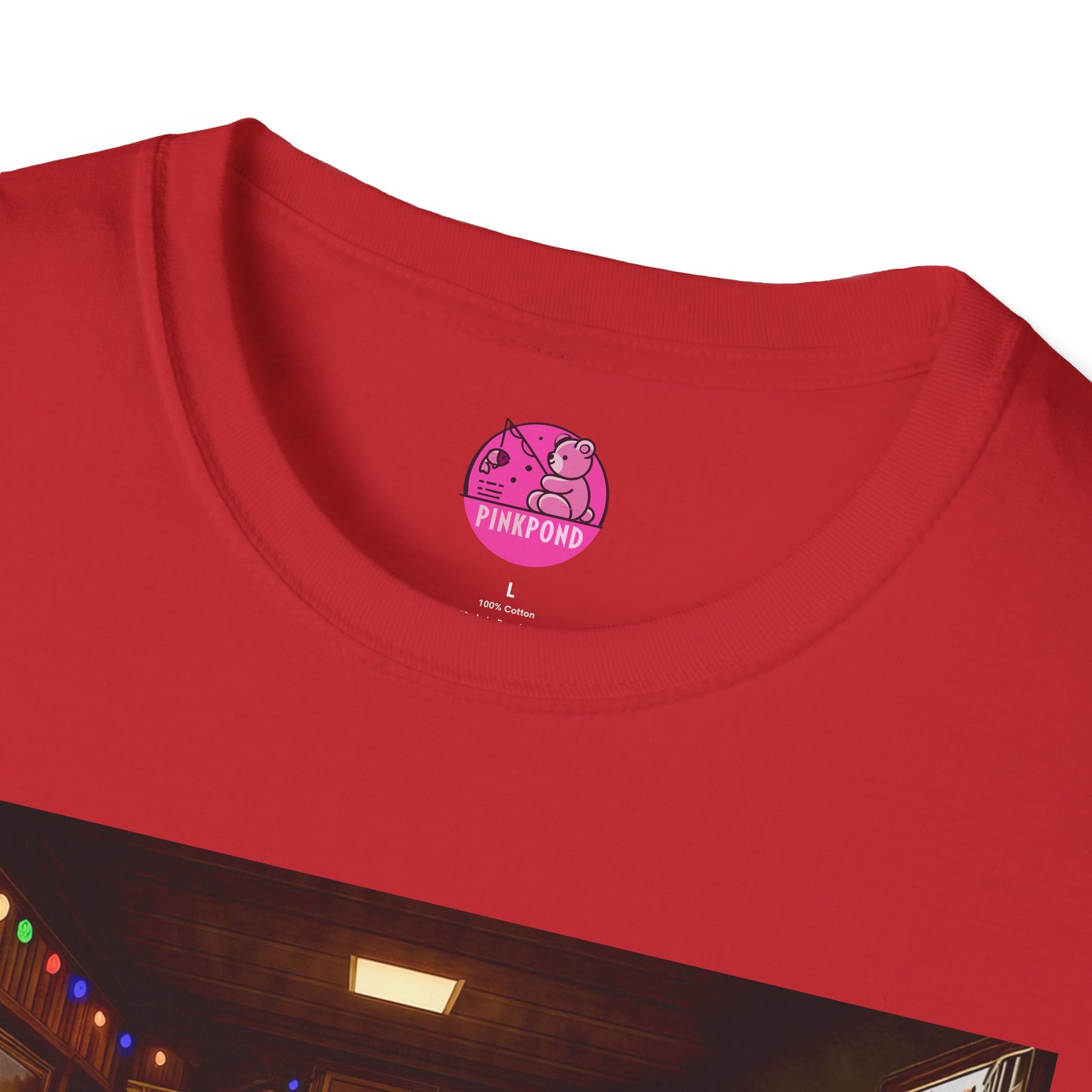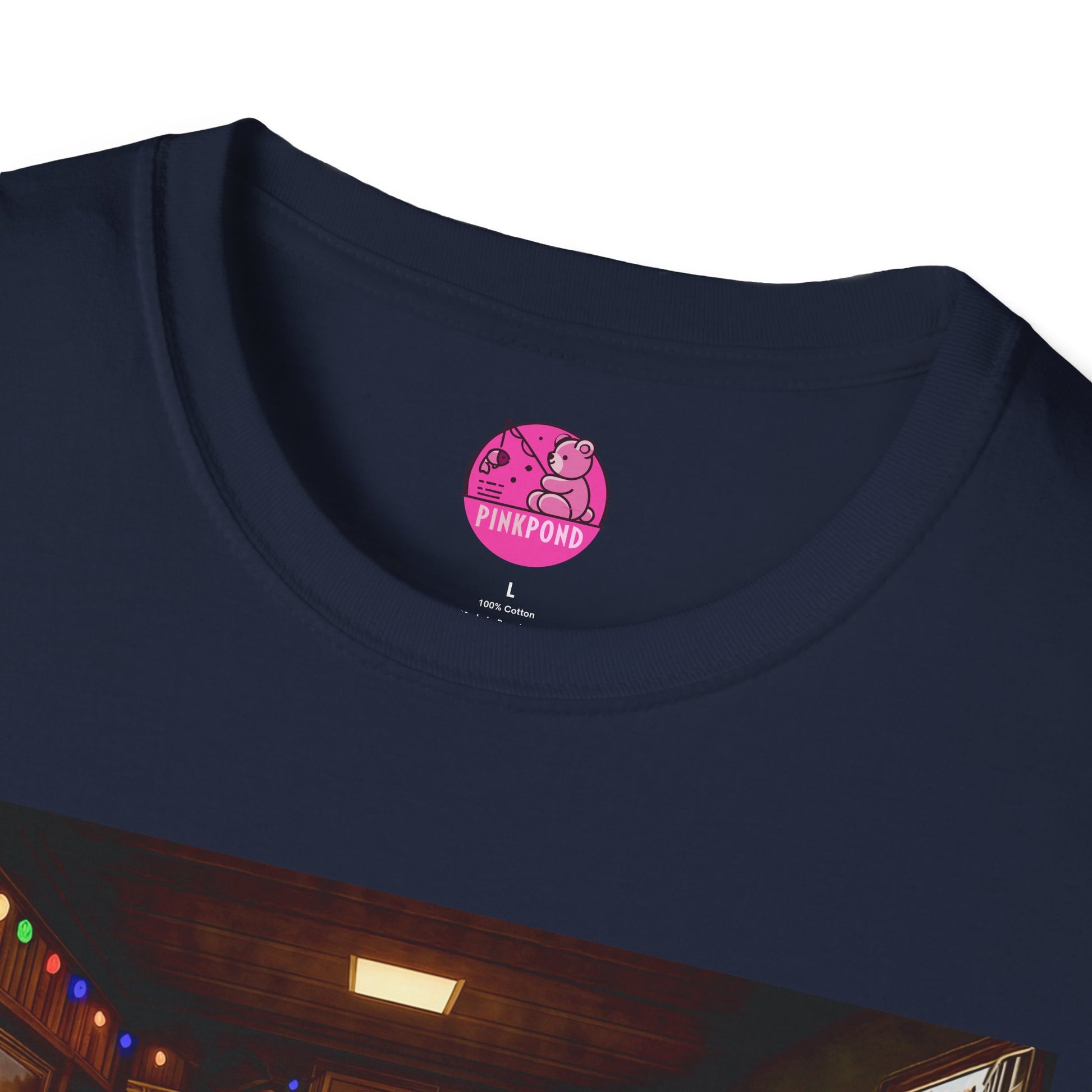 Step into a snug, bookish wonderland with The Vintage Bookstore T-Shirt from PinkPond. This richly illustrated design captures a charmingly cluttered bookstore run by a bespectacled bear, surrounded by shelves of curiosities and posters of PinkPond legends. Perfect for lovers of nostalgia, bookworms, bear-watchers, and PinkPond collectors alike. Gives off a cozy and whimsical vibe, making it a great addition to any wardrobe for those who enjoy unique and detailed designs. Ideal for holidays like National Book Lovers Day or casual outings with a touch of whimsy.
